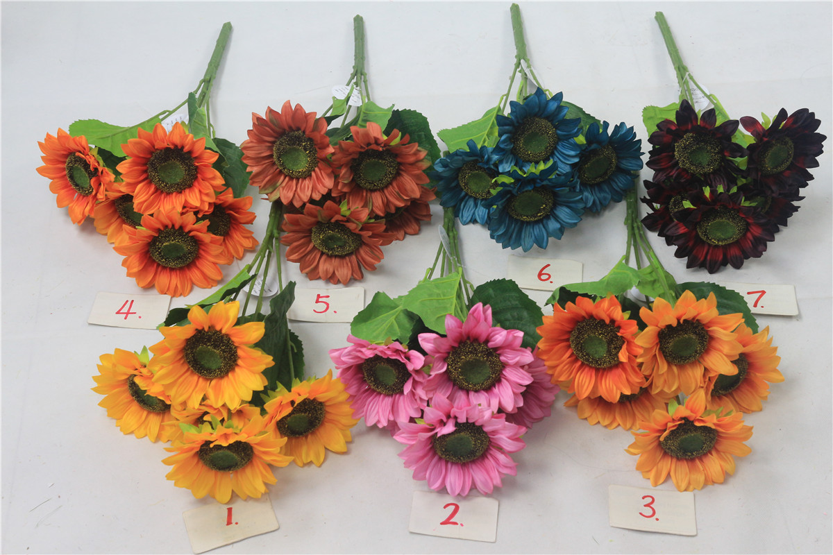 Description :51cm, 5bunch sun flower bush, dia: 13cm, 5flower, 4lvs, satin
