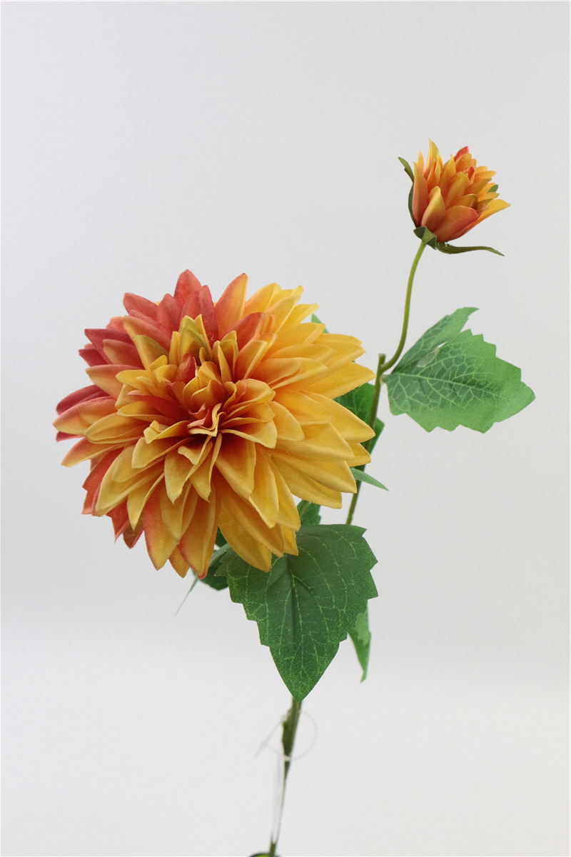 Description : 65cm, single 2-branch dahlia, large flower dia: 10cm, bud dia: 3cm, 5 leaves, snowflake cloth