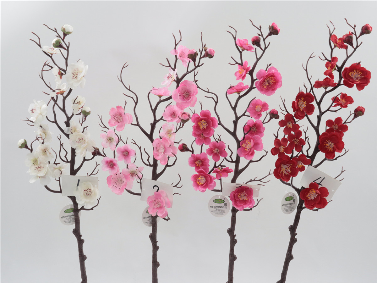 Description : 73cm,single plum blossom,5 big flowers,dia:5cm,9 middle flowers,dia:4cm, 4 bud,pongee