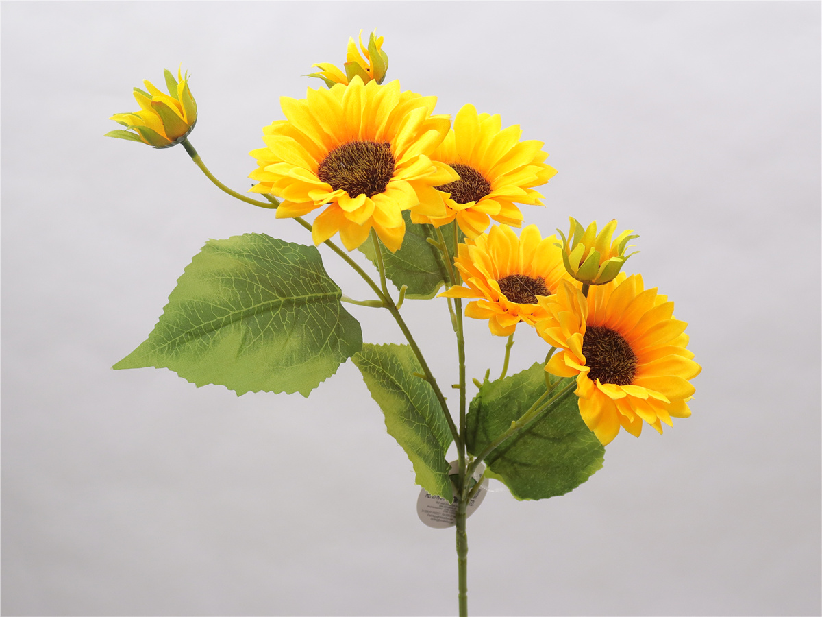 Description : 73cm,Single 7 head sunflowers,4 large flowers, dia:9cm,3 small flowers, dia:3cm,4 fabric leaves,satin
