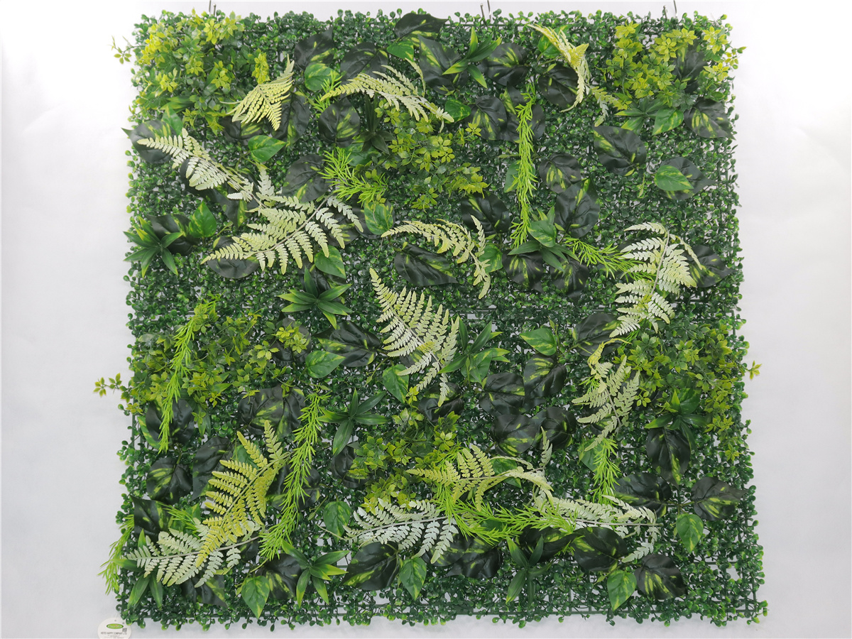 Description : 1mX1m, Persian grass combination green plant wall, 14 large Persian grass leaves, 10 sets of willow sprouts, 13 sets of bamboo leaves, 32 sets of green ivy leaves, and 45 sets of seven star lotus leaves. PE