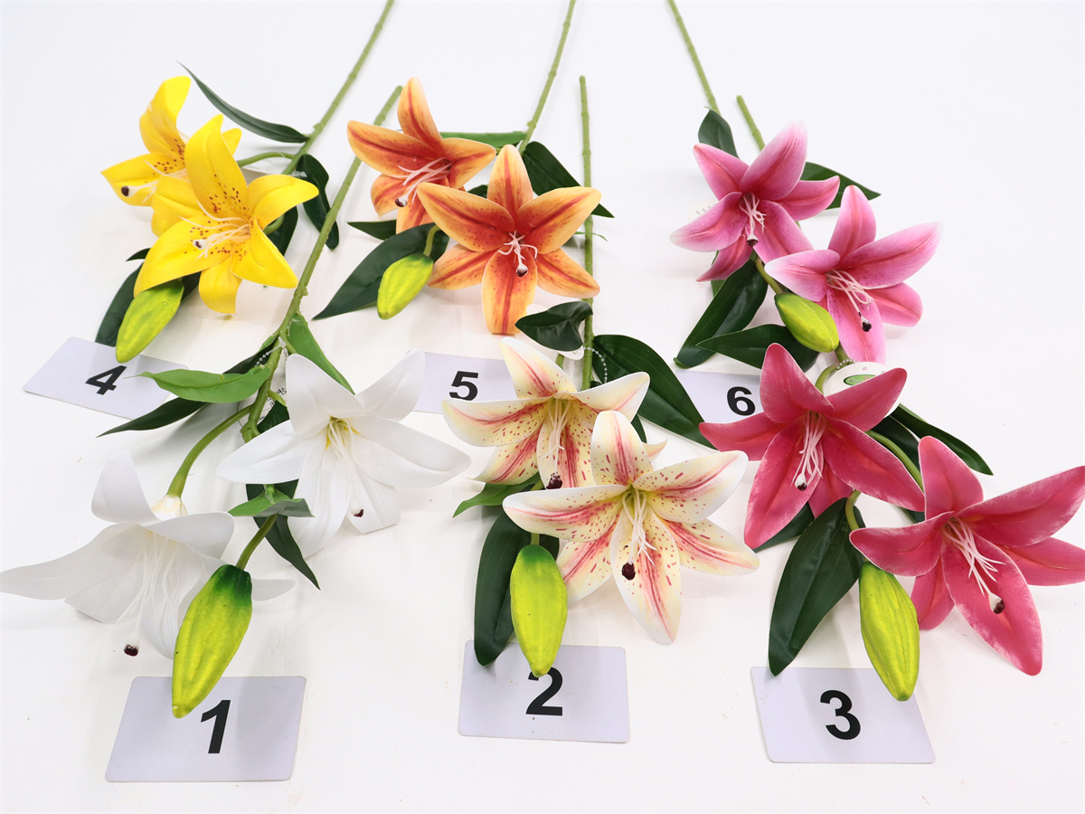 Description: 56cm, single 3 head lily,2 flowers,D:15cm,1 foam bud,5 plastic leaves,3D