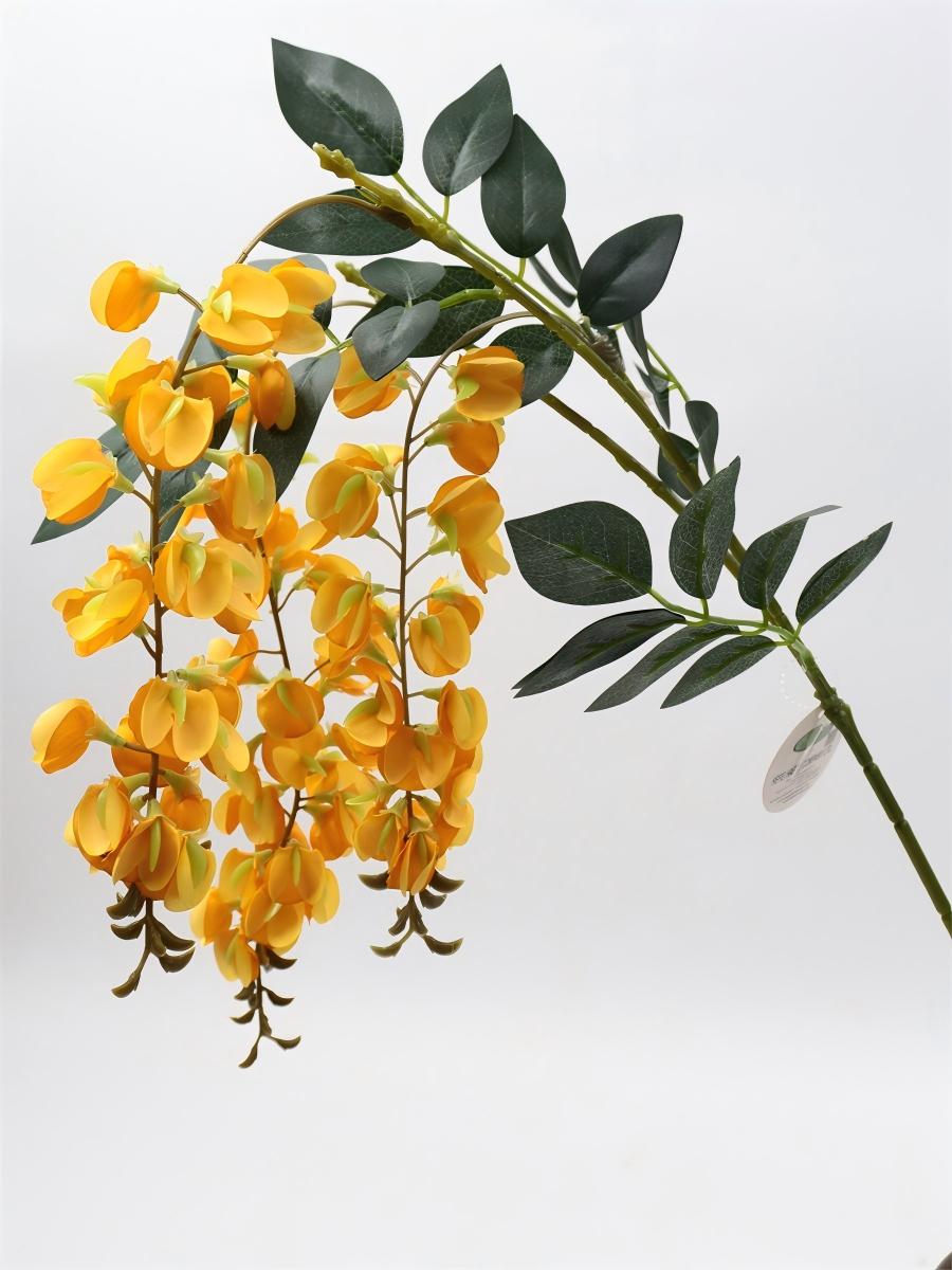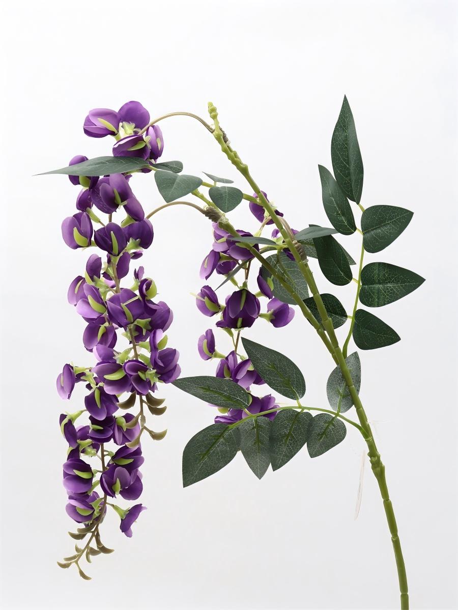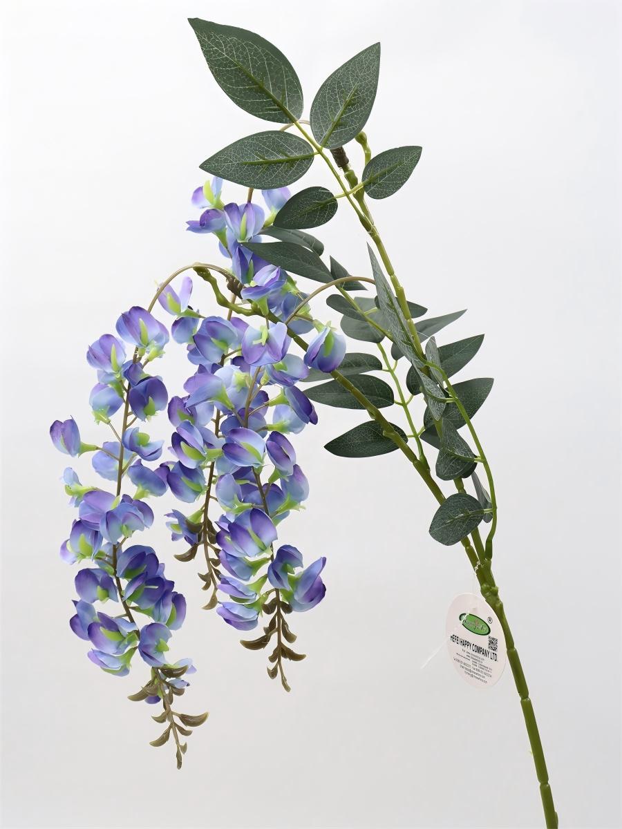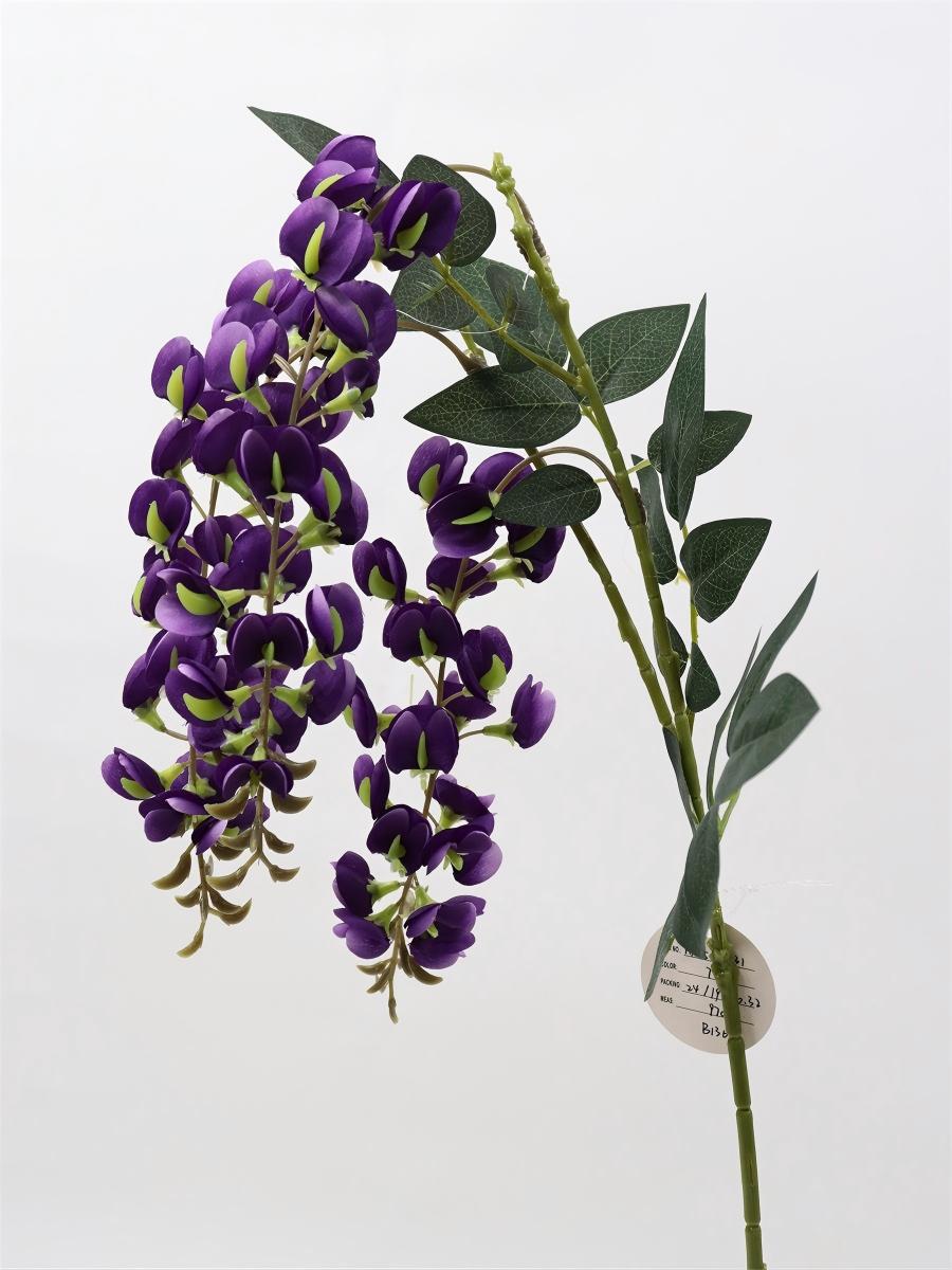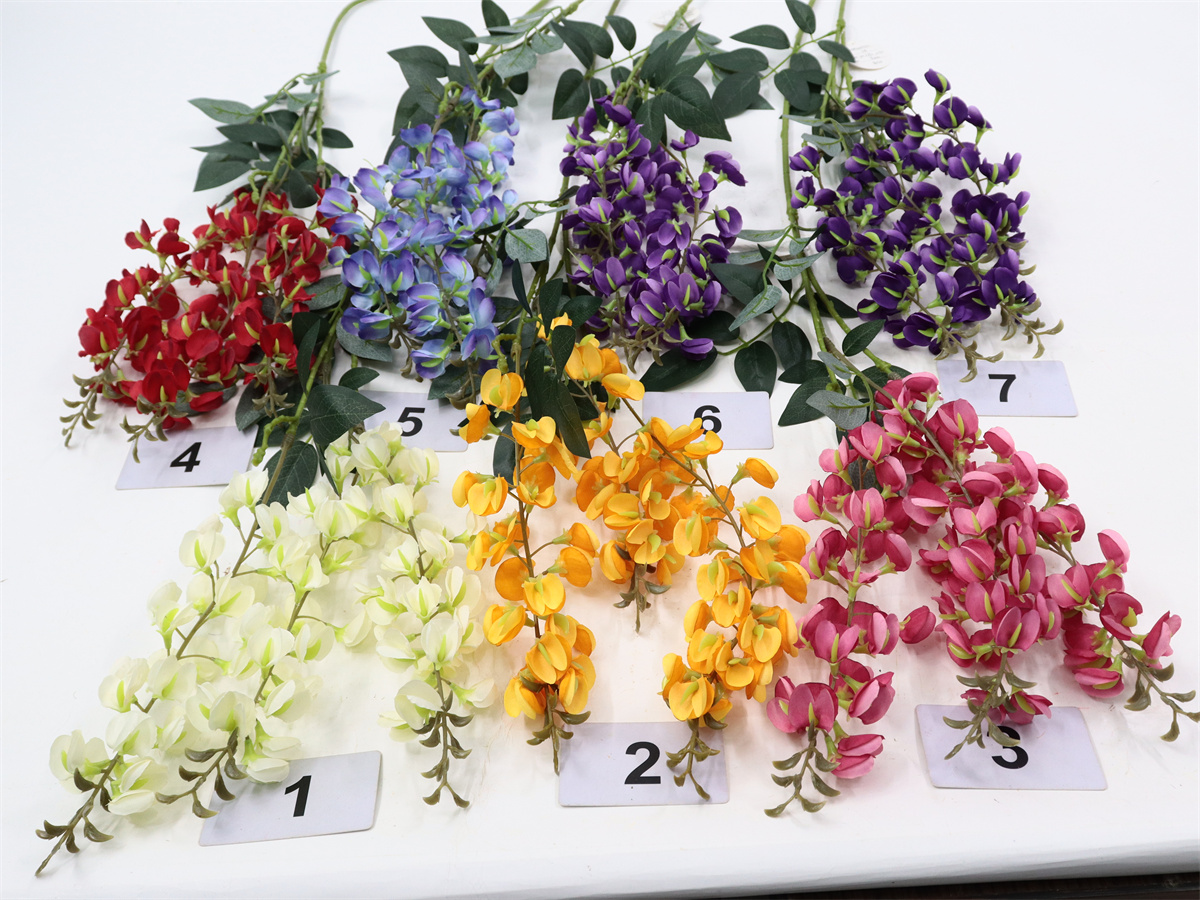 Description: 97cm, single 3 branch bean flower,82 flowers,4 sets of printed fabric leaves, Pan weaving