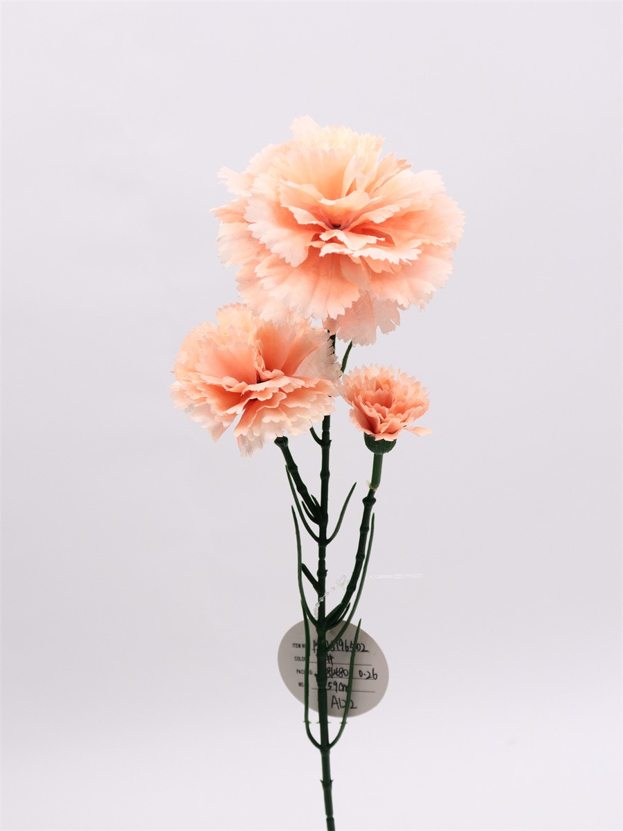 Description: 59cm,Single 3-head Carnation1 large flower dia: 8cm, 1 medium flower dia: 5.5cm, 1 small flower dia: 3.5cm, pongee