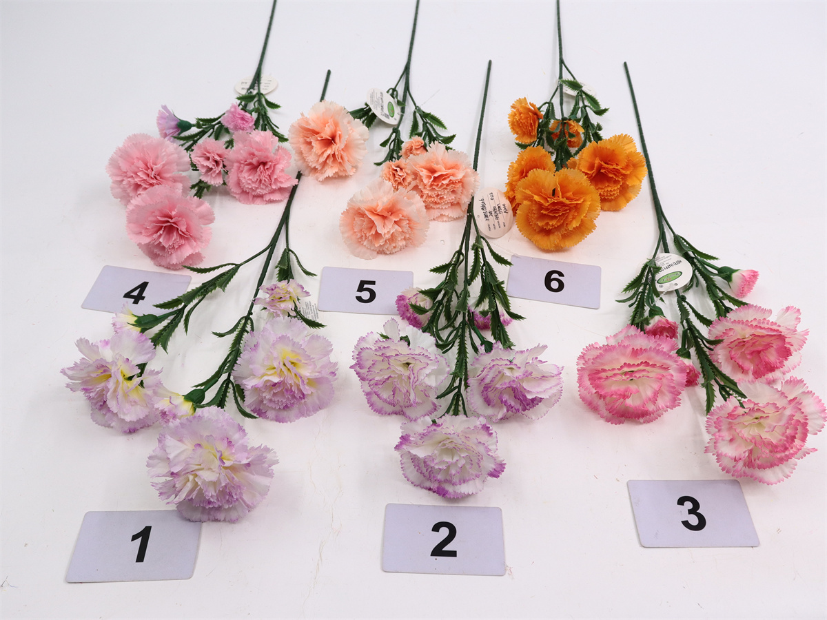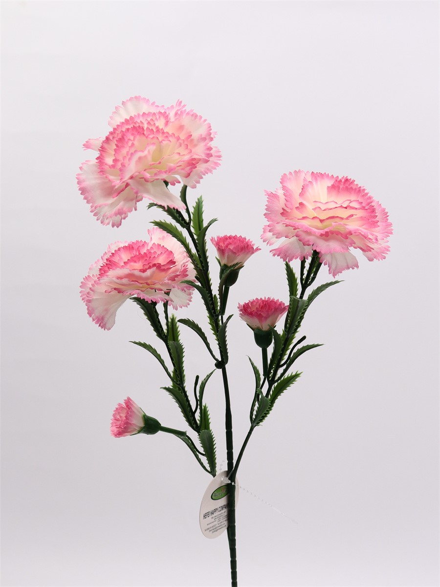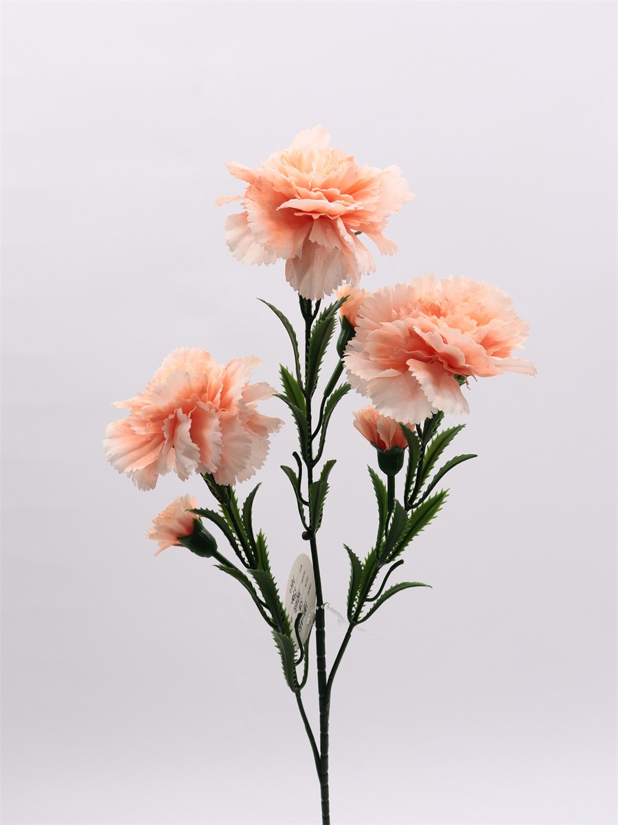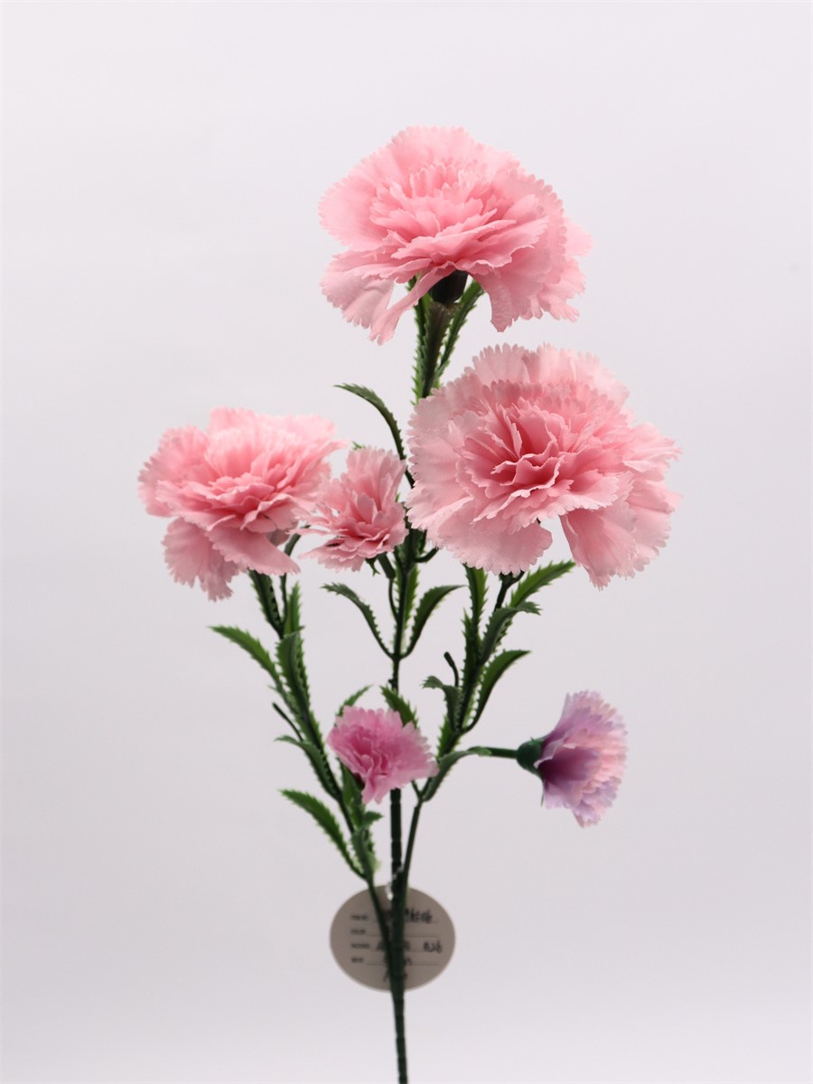 Description: 59cm,Single 3-branch carnation3 large flowers dia: 8cm, 3 small flowers dia: 3cm, pongee(8 layers petals)