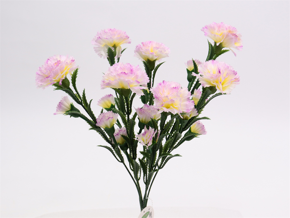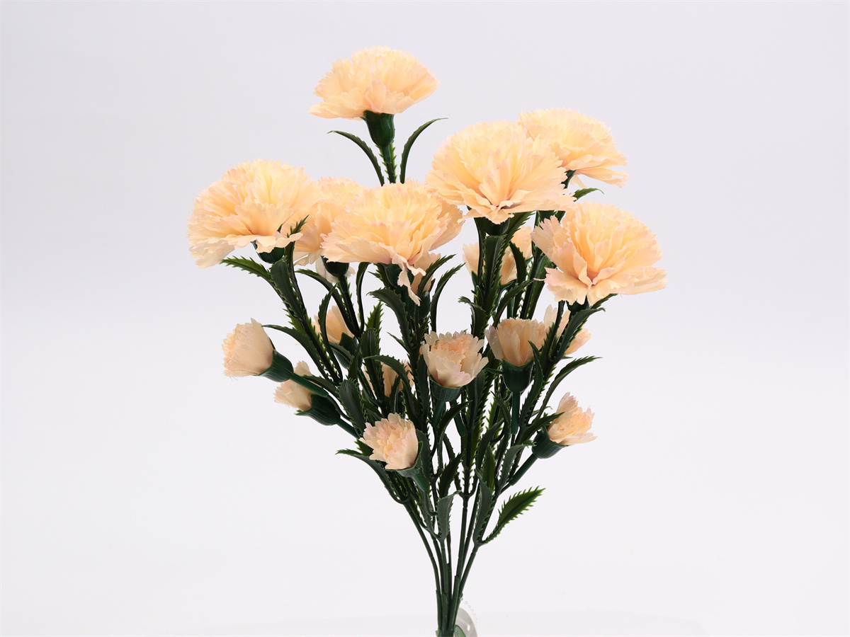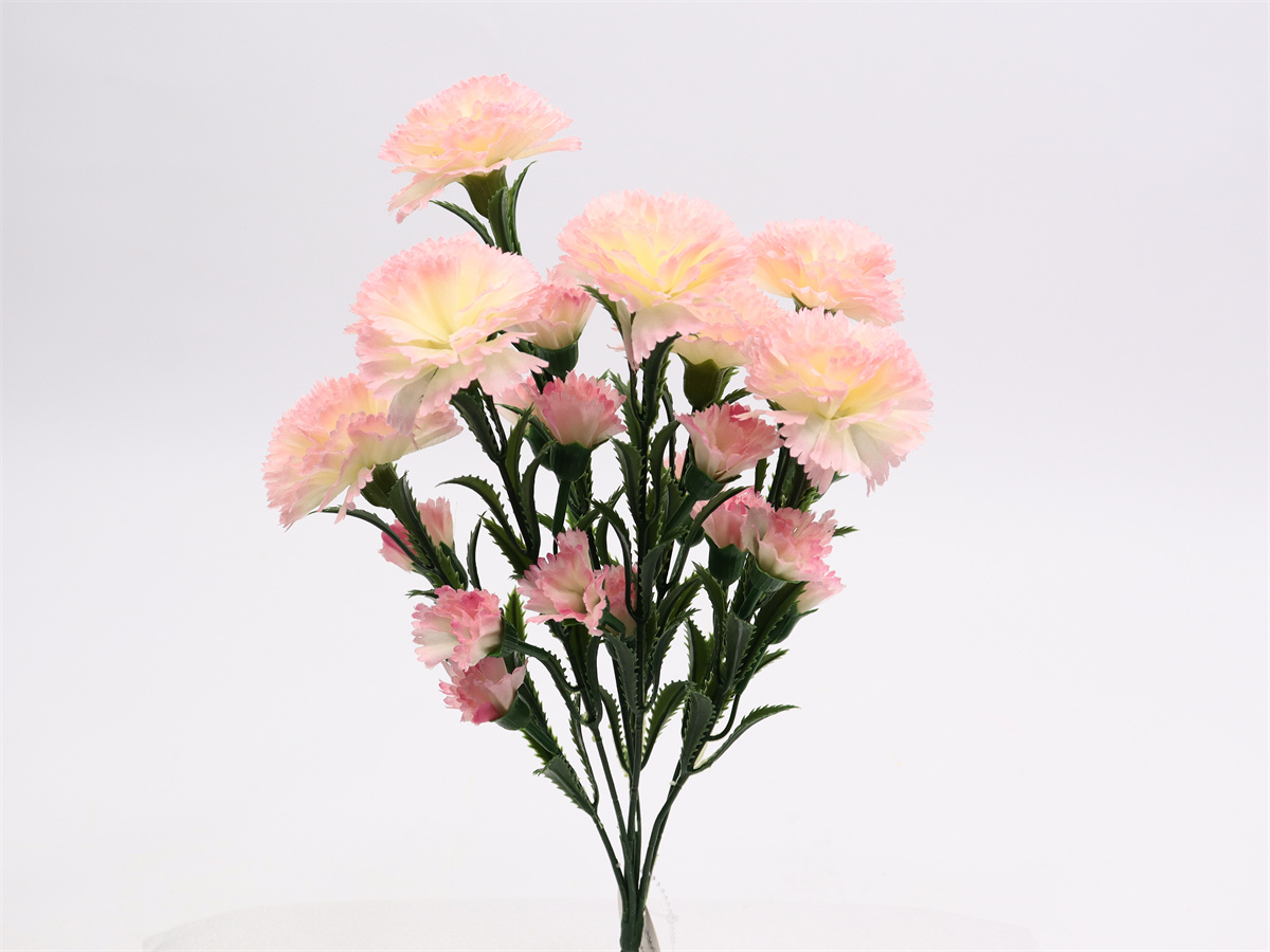 Description: 41cm,7-branch carnations bouquet, 7 large flowers dia: 6cm, 14 small flowers,pongee