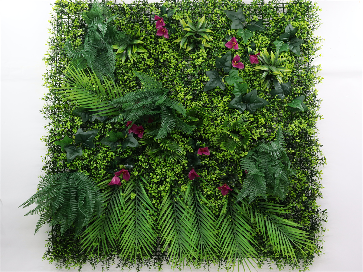 Description:100*100CM,plant wall,16*16*4 grid basic plastic grass,7 sets of long plastic lvs, four sets of medium plastic lvs,3 sets of small plastic lvs,8 sets of grape lvs, fourteen sets of flowered plastic lvs