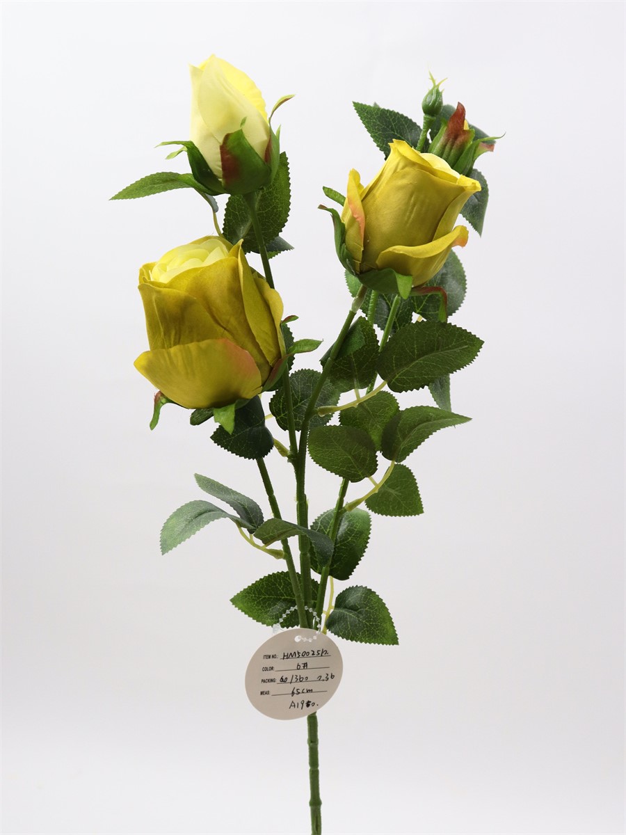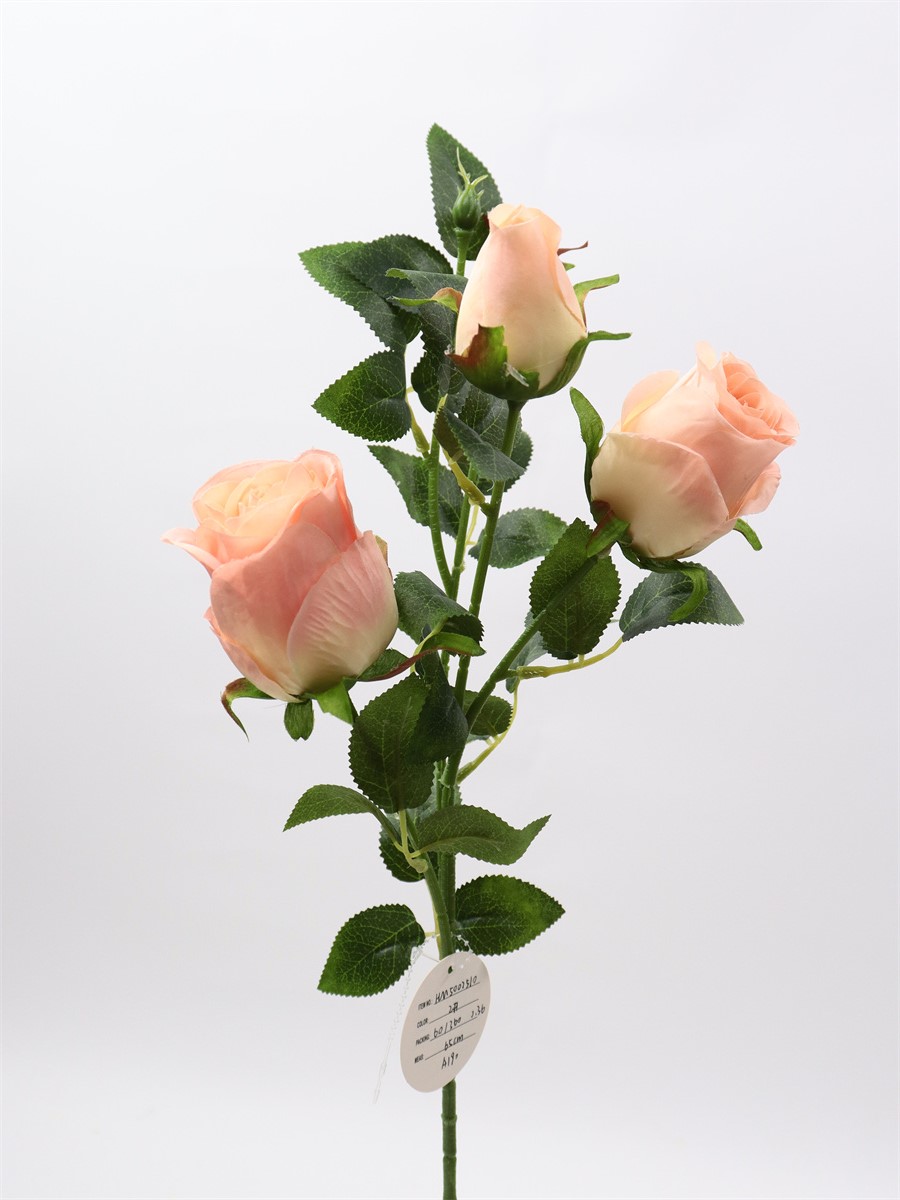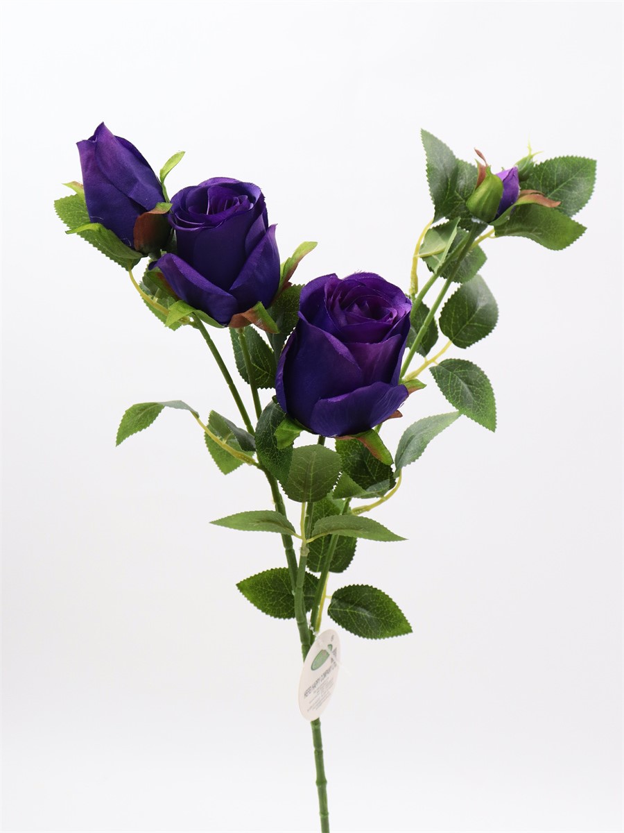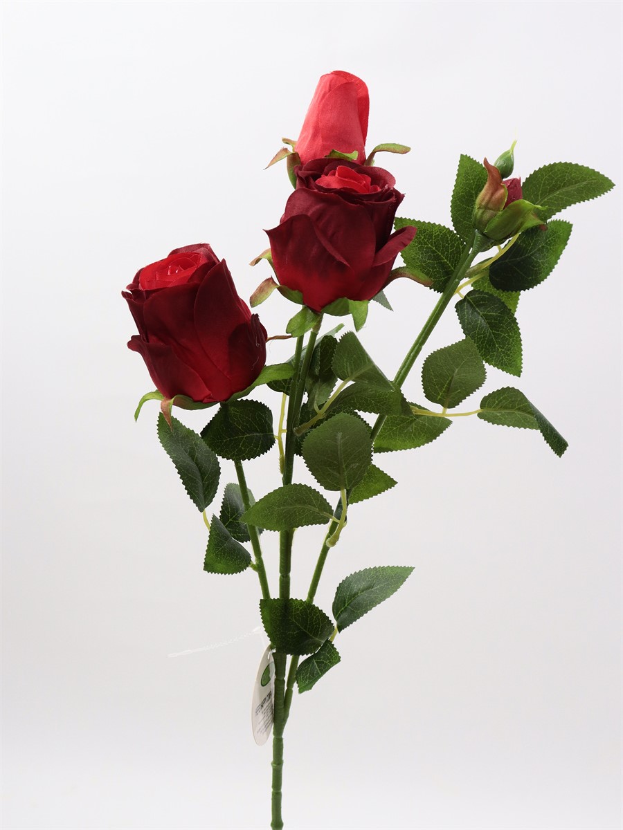 Description:65cm, single 4 head rose,1 large flower,D:5cm,1 medium flower,D:4cm,2 flower buds,9 sets of printed fabric leaves, Pan weaving