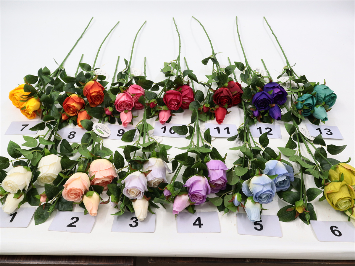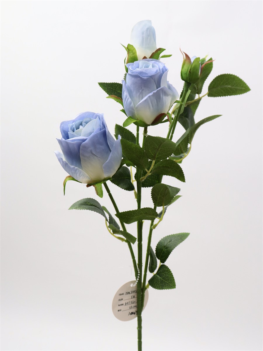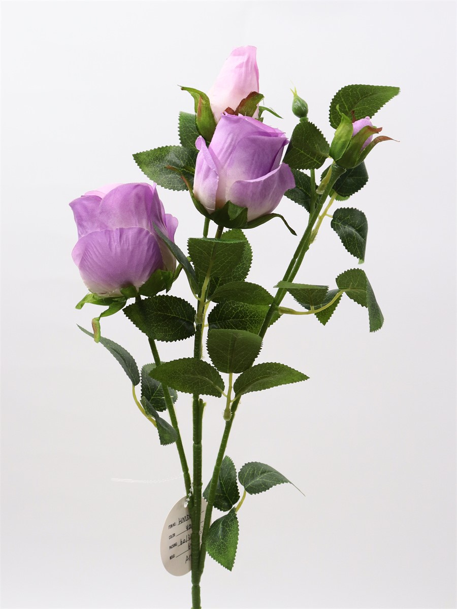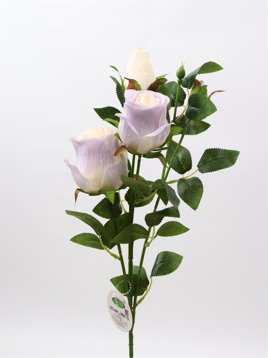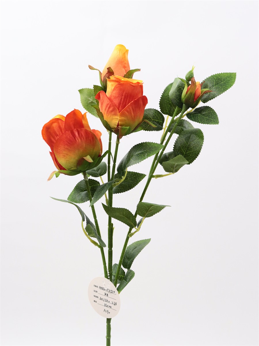 Description:65cm, single 4 head rose,1 large flower,D:5cm,1 medium flower,D:4cm,2 flower buds,9 sets of printed fabric leaves, Pan weaving