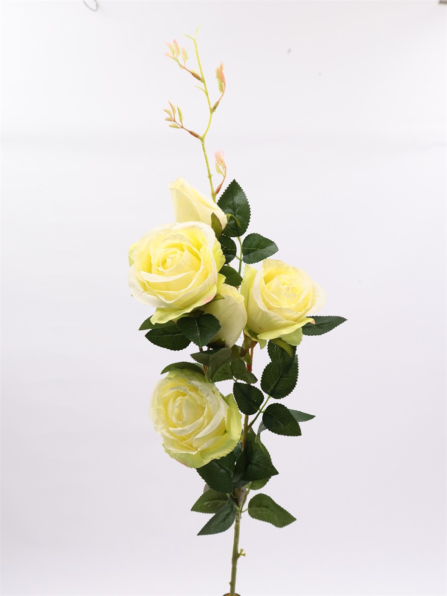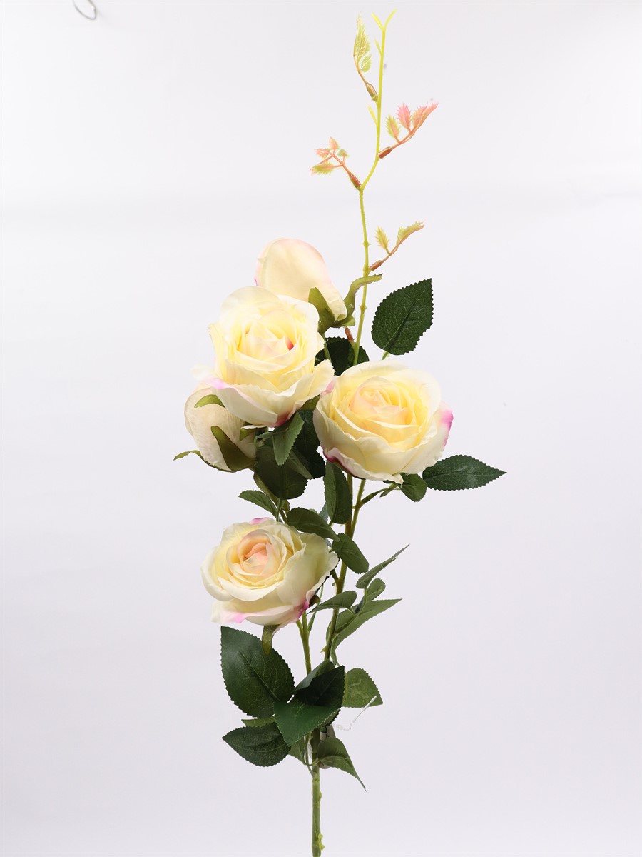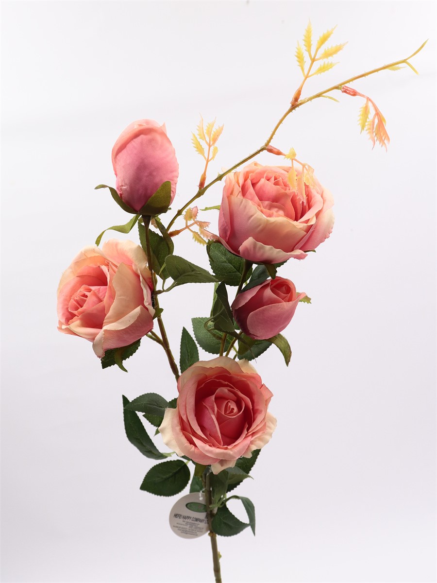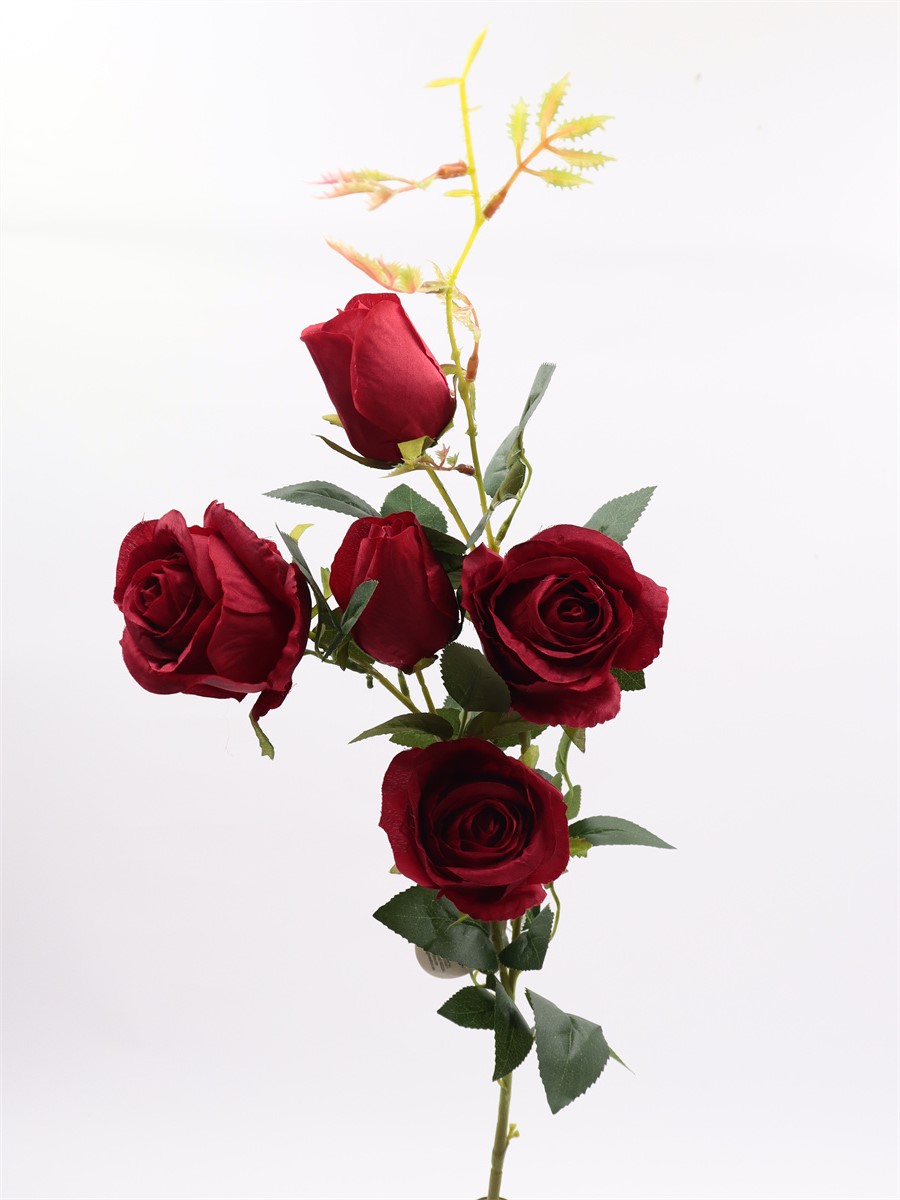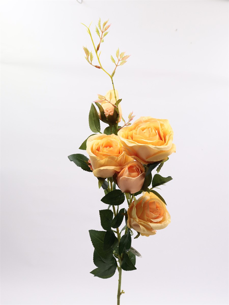 Description:73cm, Single 5 head roses, 3 flowers, dia: 8cm, 2 flower buds, 12 sets of printed silk leaves, pongee