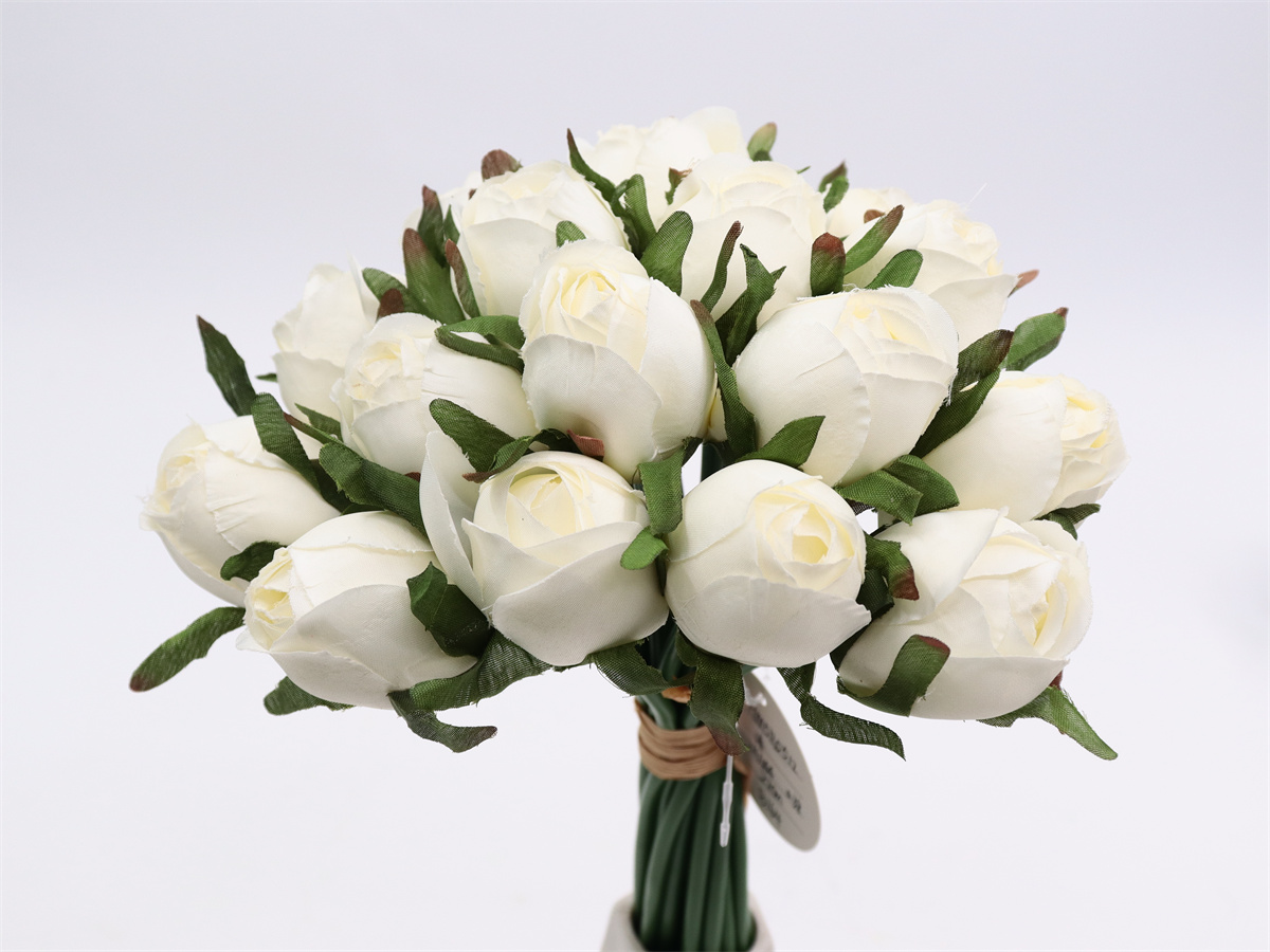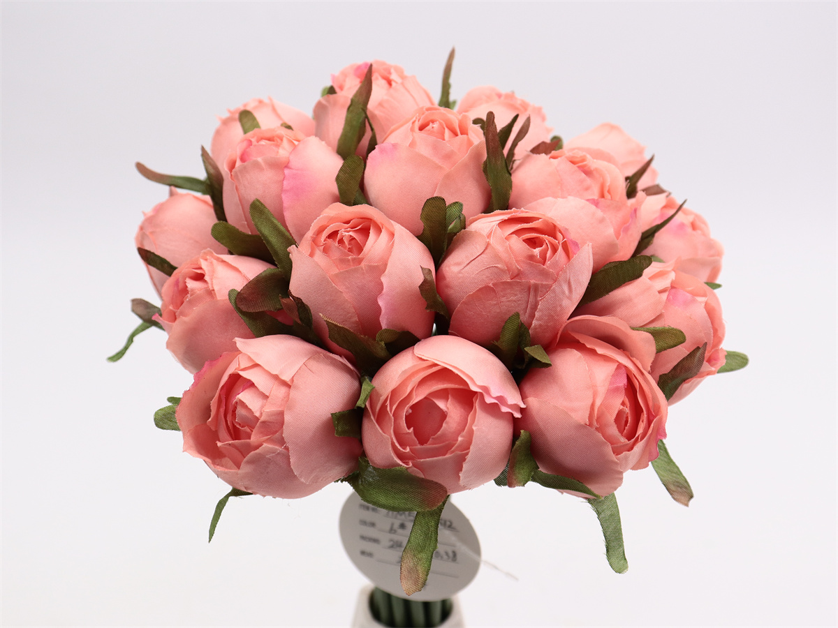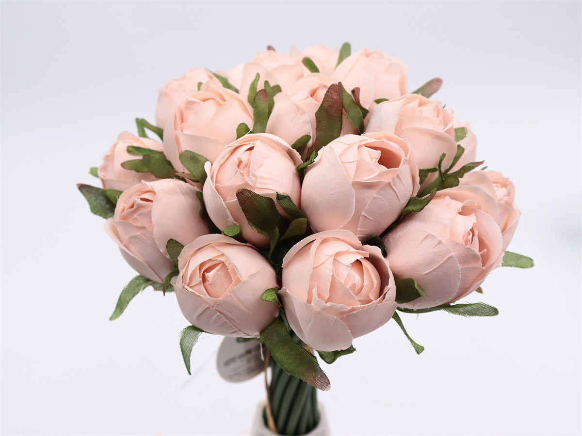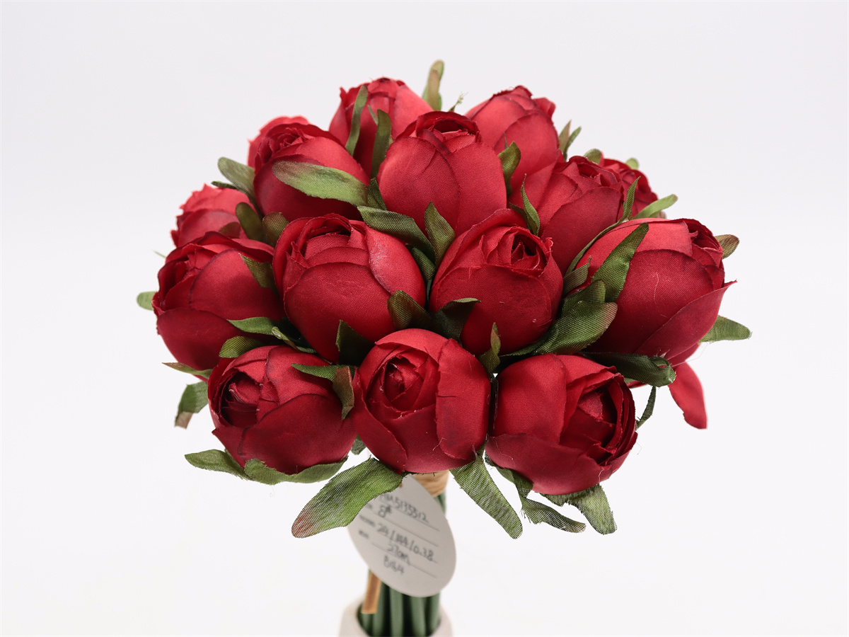 Description:27cm, 18 head rose buds handheld,DIA:3cm, leather tube,1 lafite grass, Pan weave