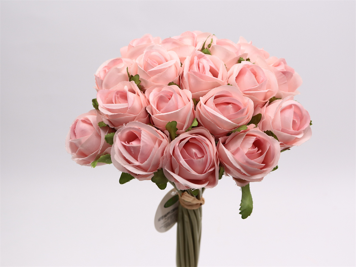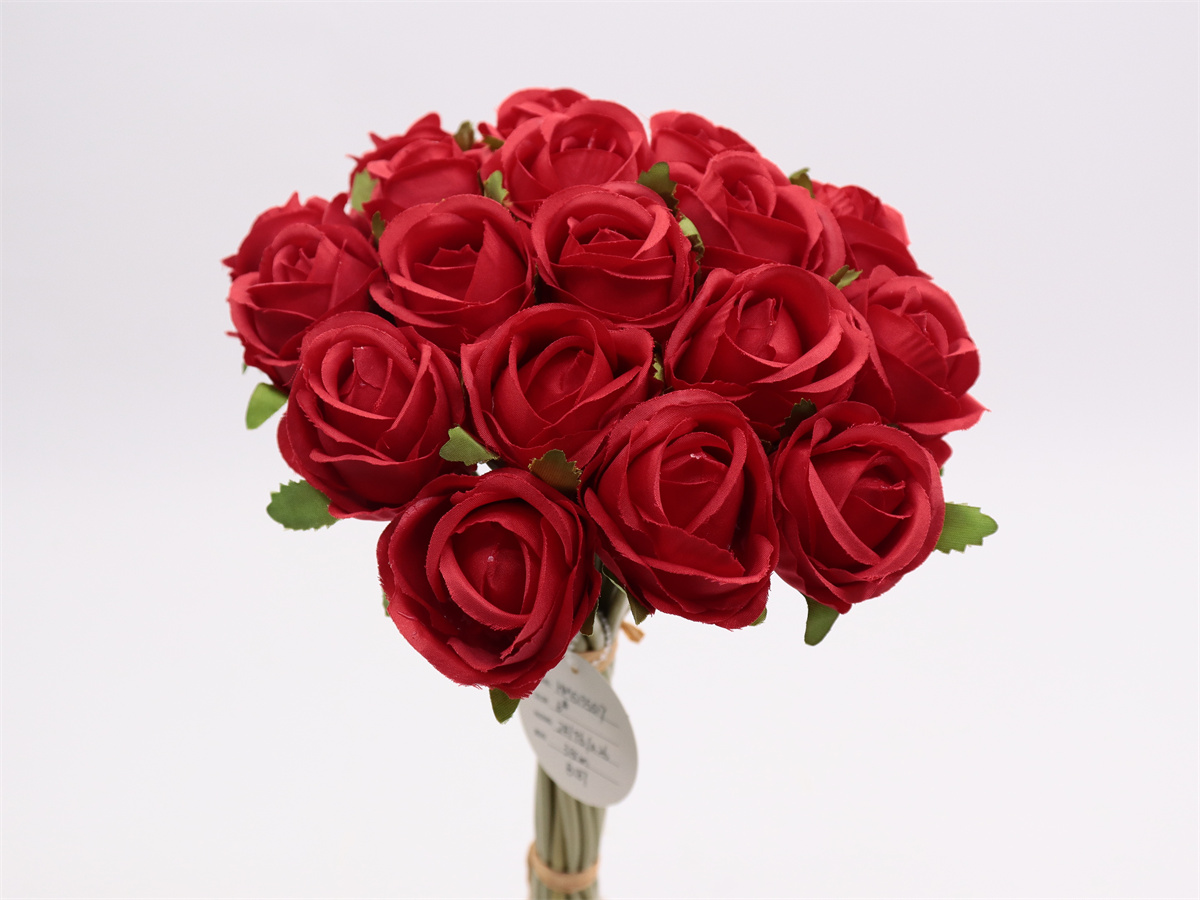 Description:38cm,18 head rose handheld,18 flowers DIA:4cm, leather tube,2 lafite grass, Pan woven