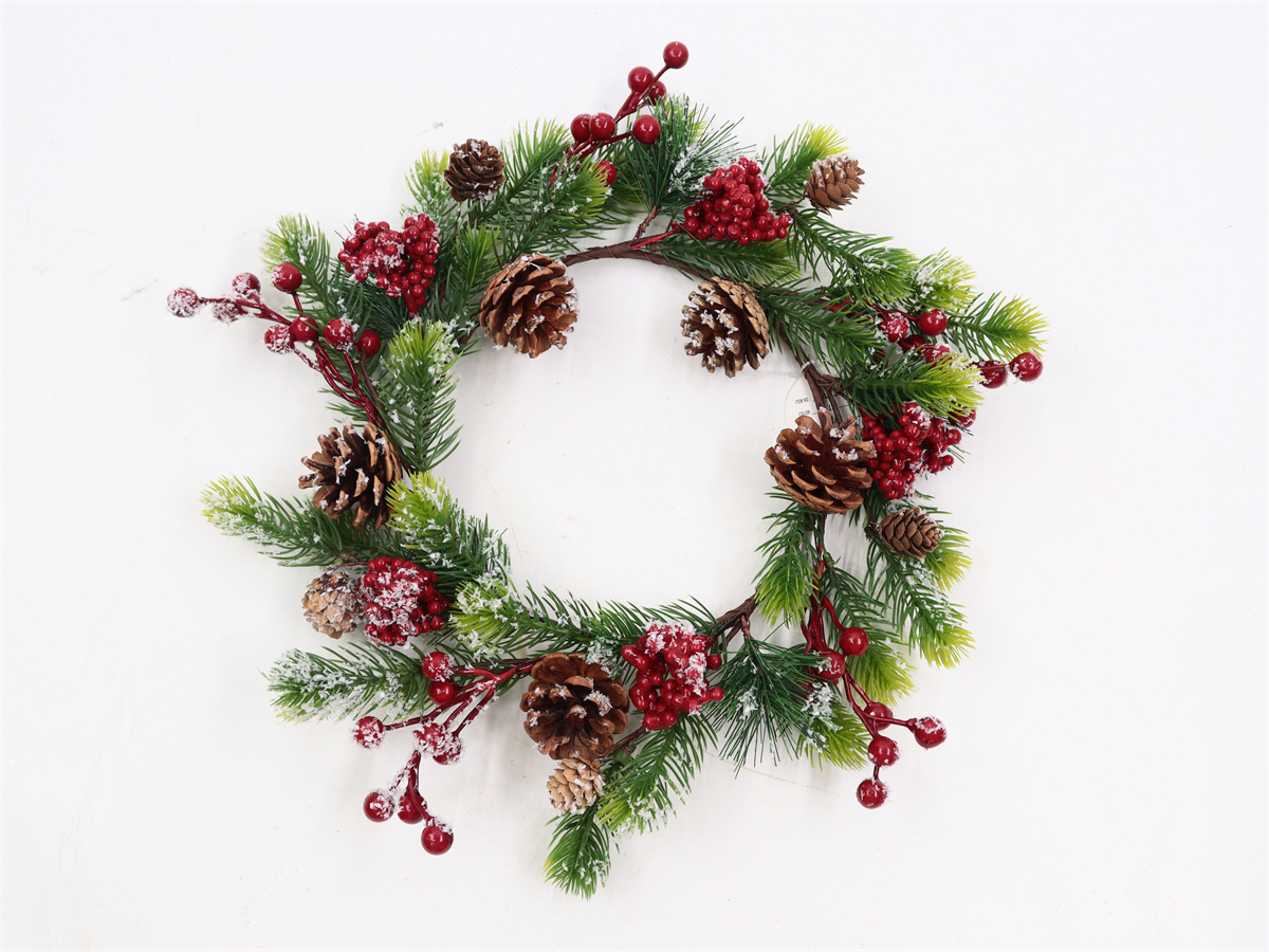 Description:40cm, red berries, pinecones, green pine leaves, mixed Christmas wreaths