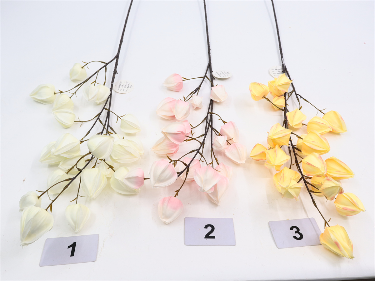 Description:100 cm,single 4 bunch physalis,21 fruit. pongee
