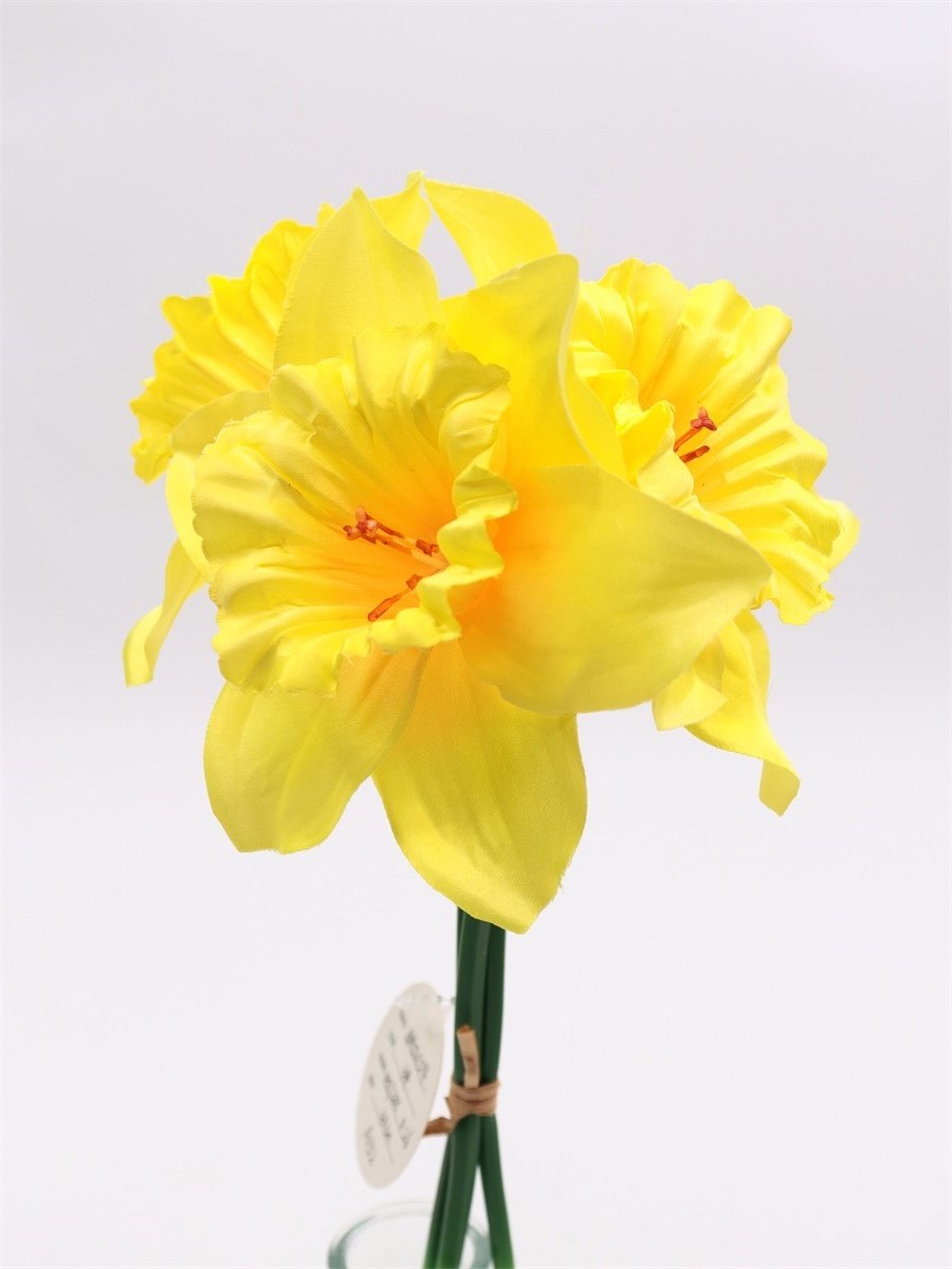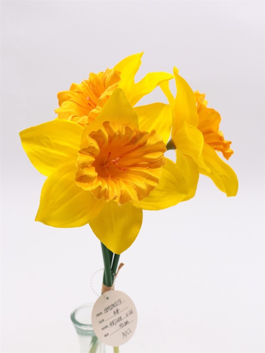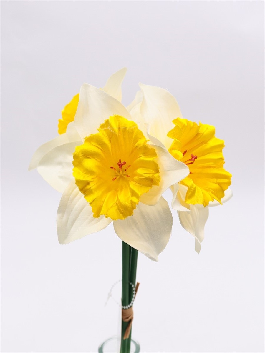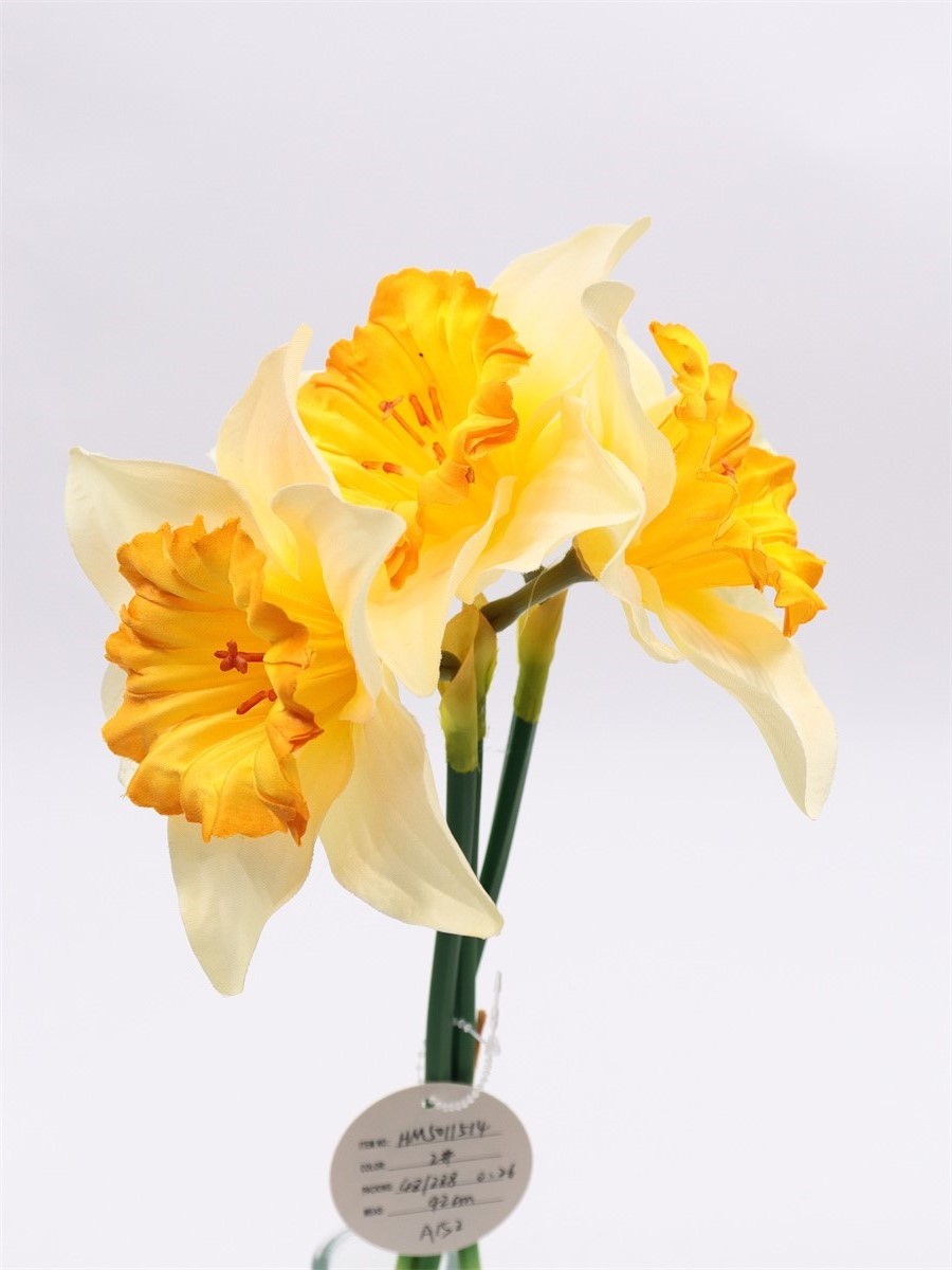 Description:42 cm,3 head narcissus handheld,3 flower,DIA: 12 cm,tube,raffia grass. stain