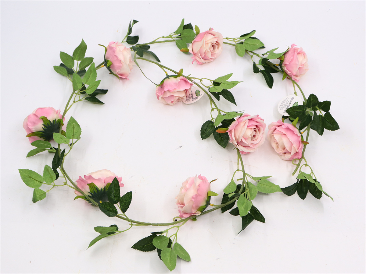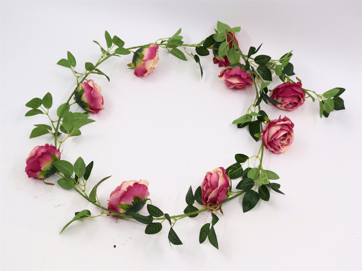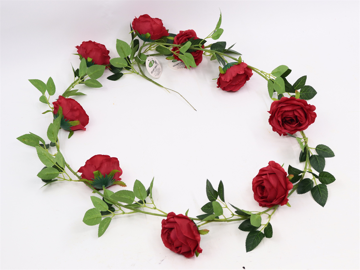 Description:190cm, rose vine, 9 flowers, dia: 8cm, 18 sets of leaves, pengee;