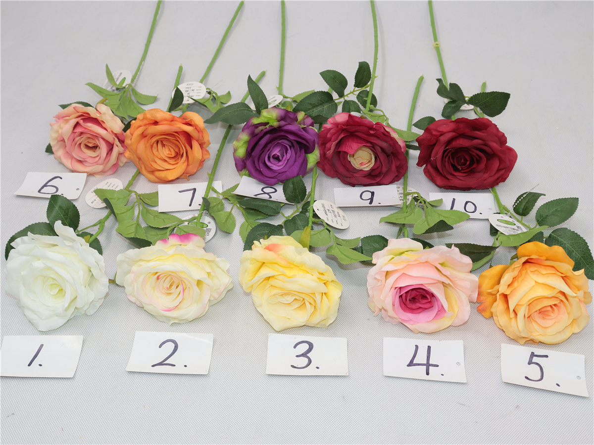 Description : 51cm,single rose,dia:10.5cm,2 set of lvs,pongee