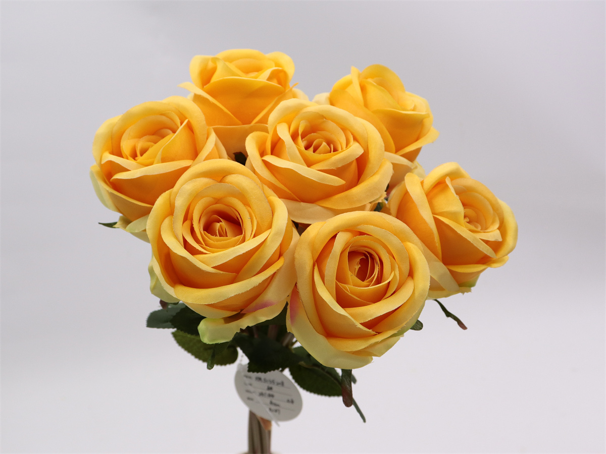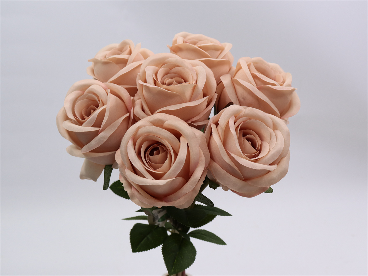 Description:40cm,7-Head Rose Hand held,7-flowered dia: 8cm, 9 sets leaves,sleeve tube, 1 Lafite grass, pongee