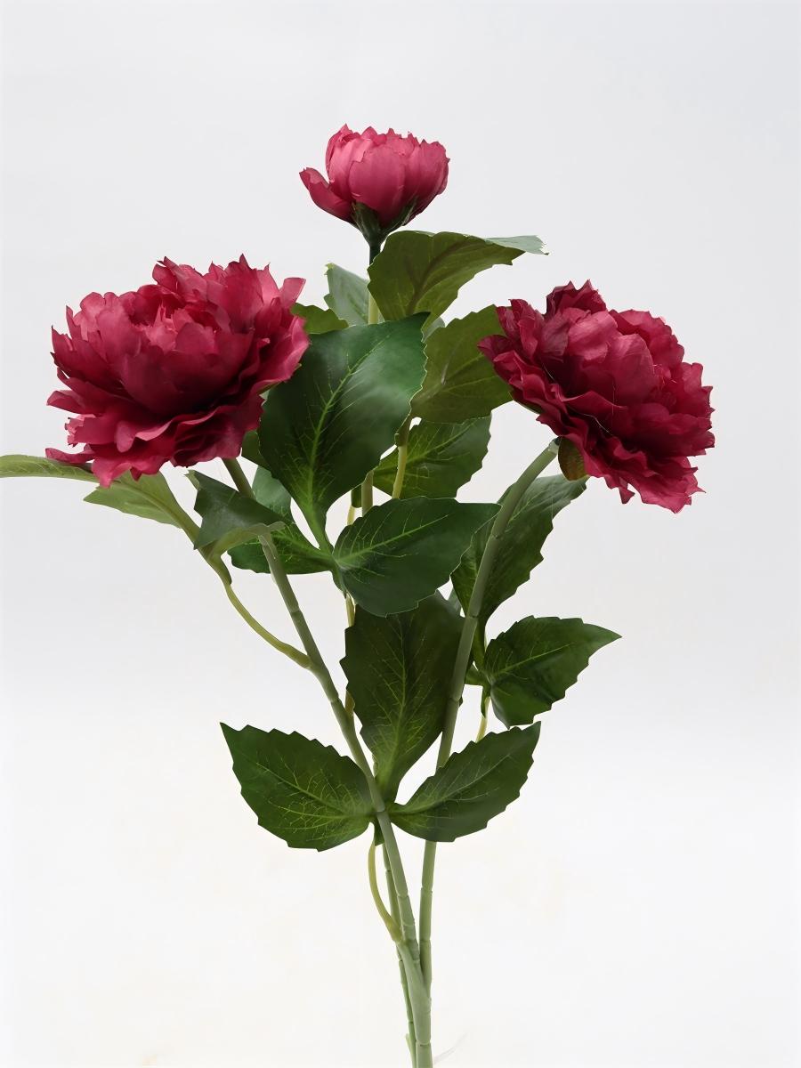 Description:49cm, 3 head small peony,2 large flowers,D:9cm,1 small flower,D:4cm,6 sets of printed leaves, Pan weaving