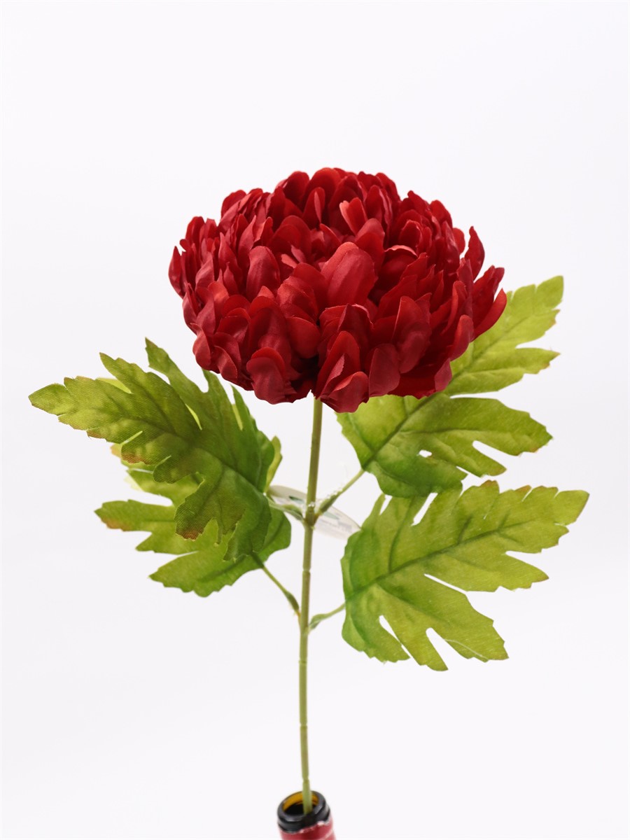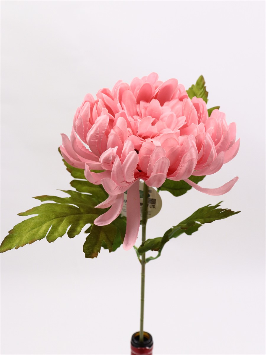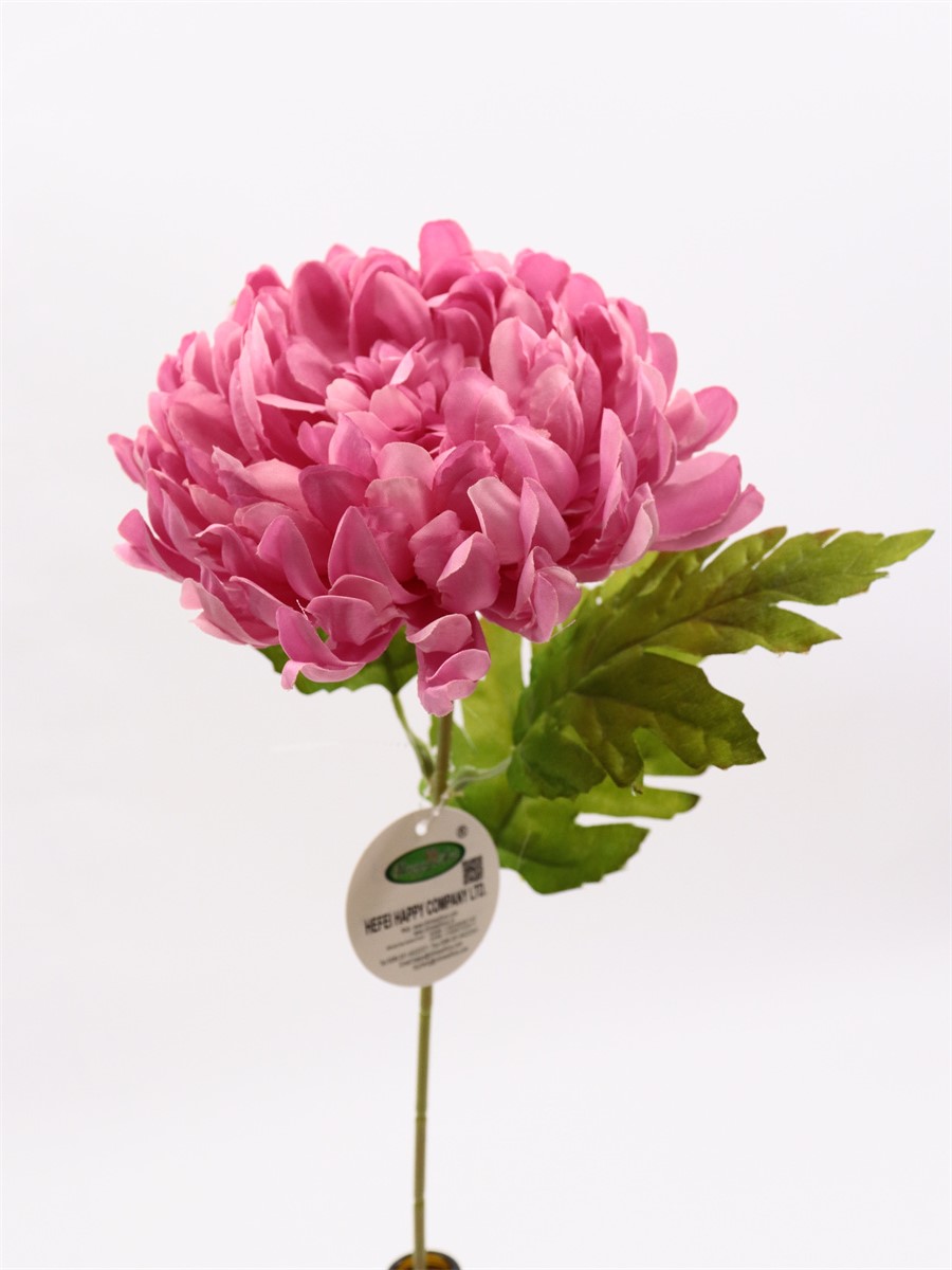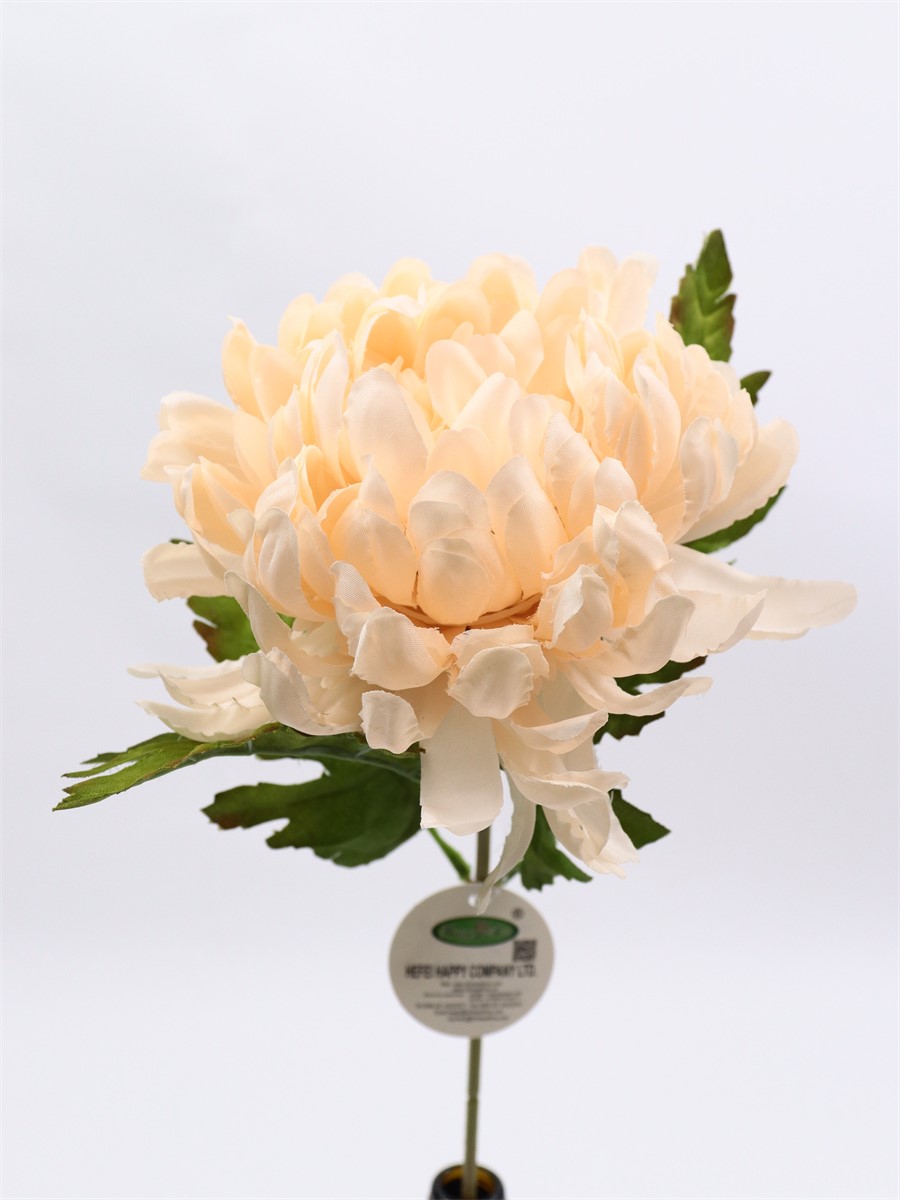 Description:57cm,Single chrysanthemum,1 flower dia: 11.5cm, 4 cloth leaves, pongee