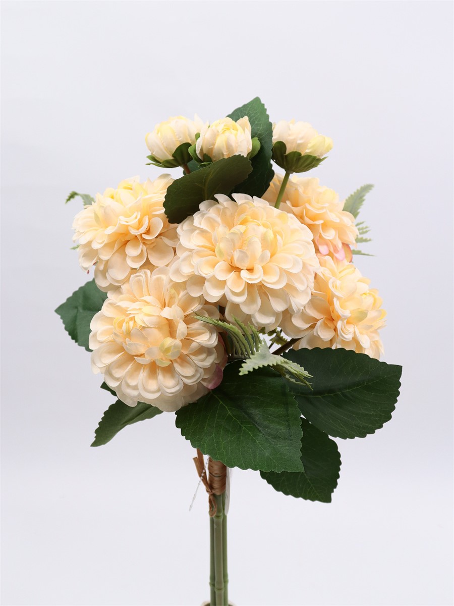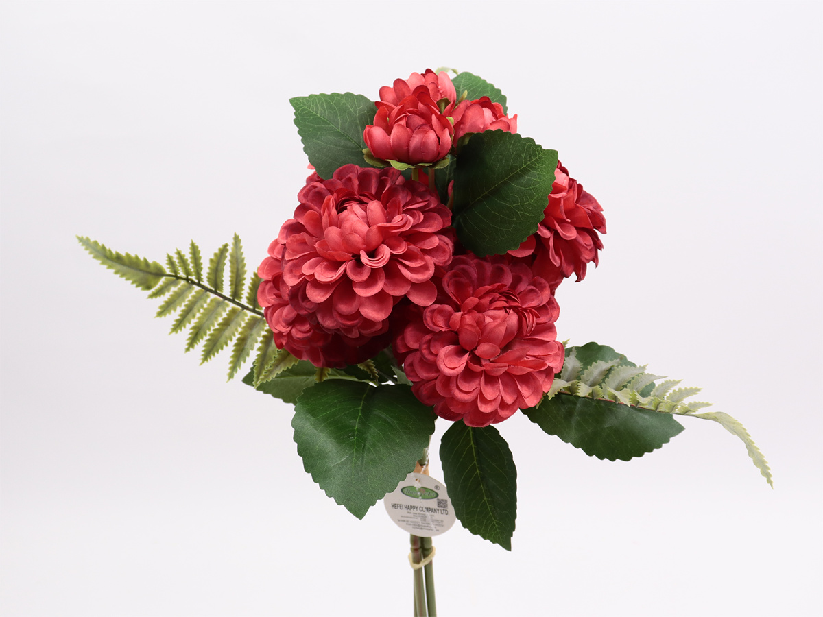 Description:54cm, Ball chrysanthemum handheld, 6 large flowers, DIA:10cm,3 small flower, DIA:4cm, 3 printed fabric leaves +3 sets of printed leaves,3 sets of plastic grass, snowflake fabric,1 lafite grass