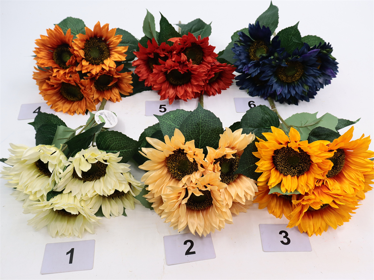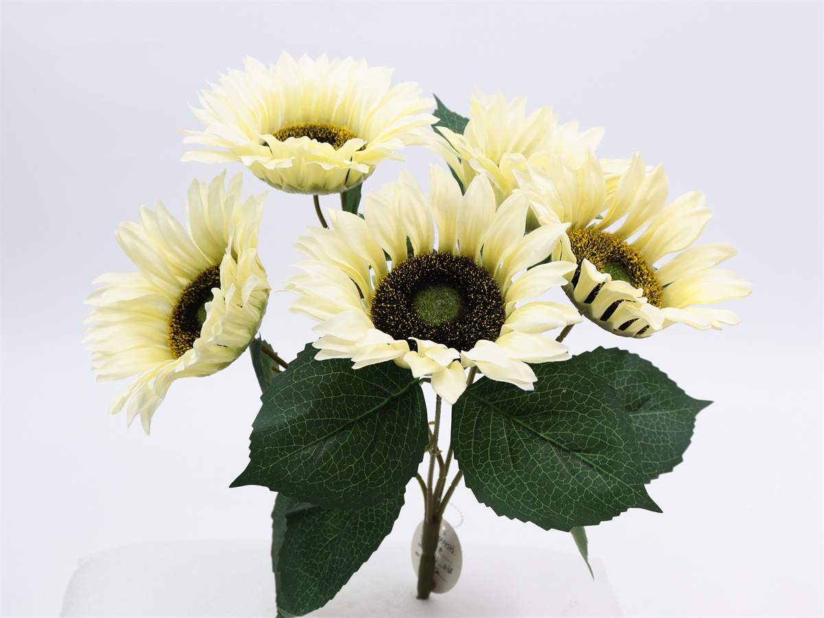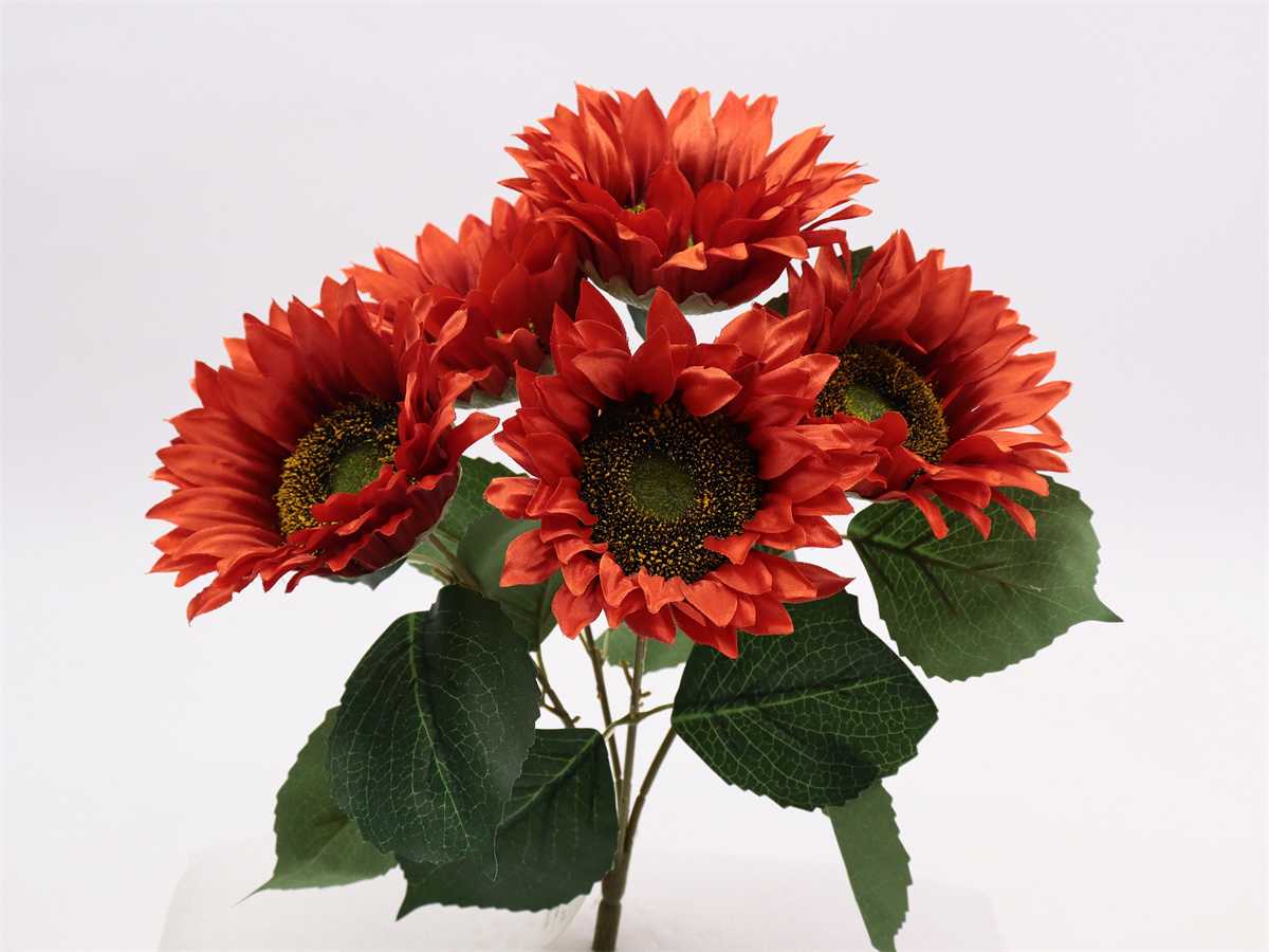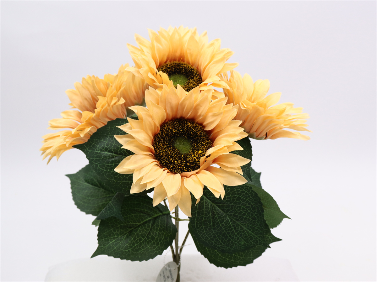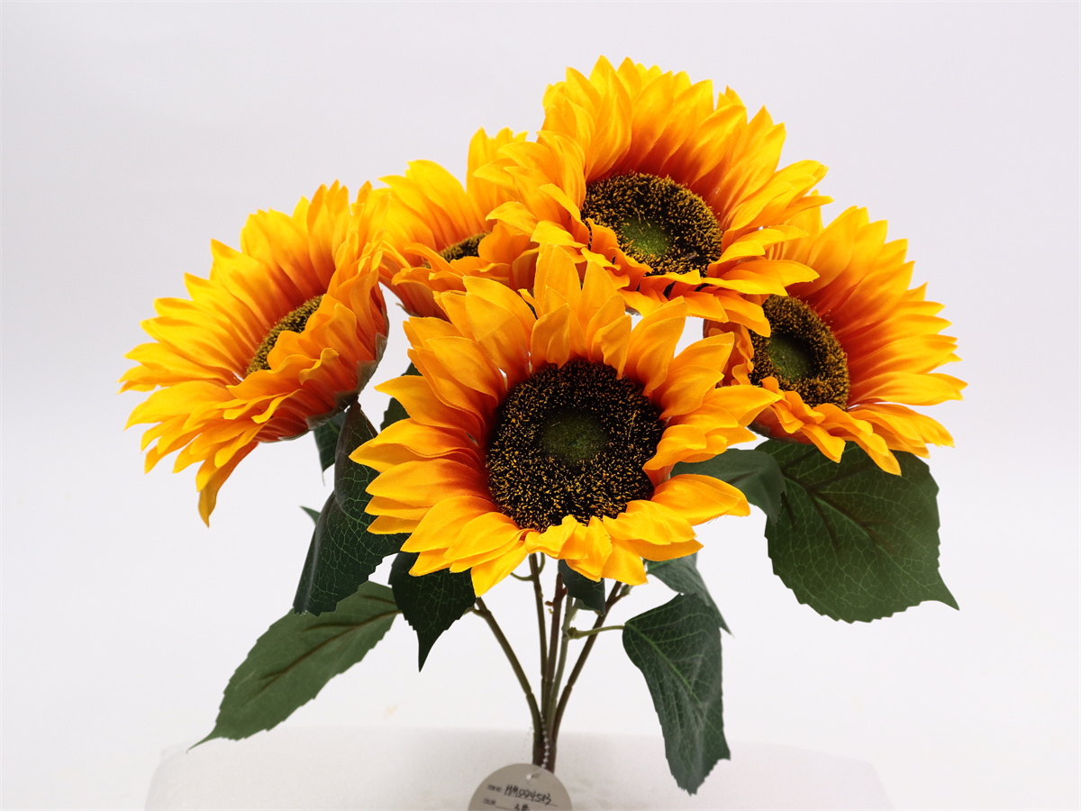 Description:41cm, 5-pronged sunflower bunches,5 flowers, dia:15cm, 7 sets of leaves, stain