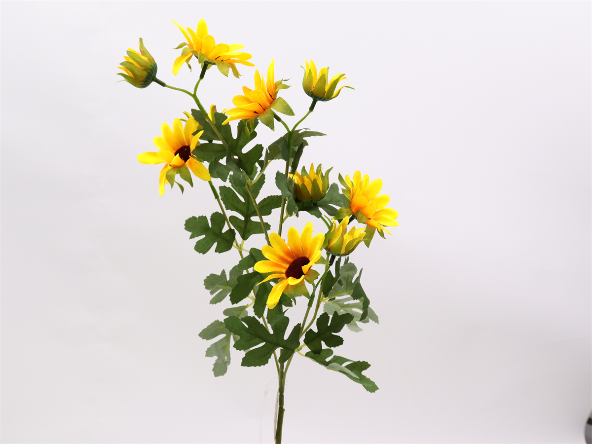 Description:67cm, single sunflower, 5 large flowers,dia:7cm, 5 small flowers,dia: 3cm, 6 sets of leaves; Stain (Top Packing packing)
