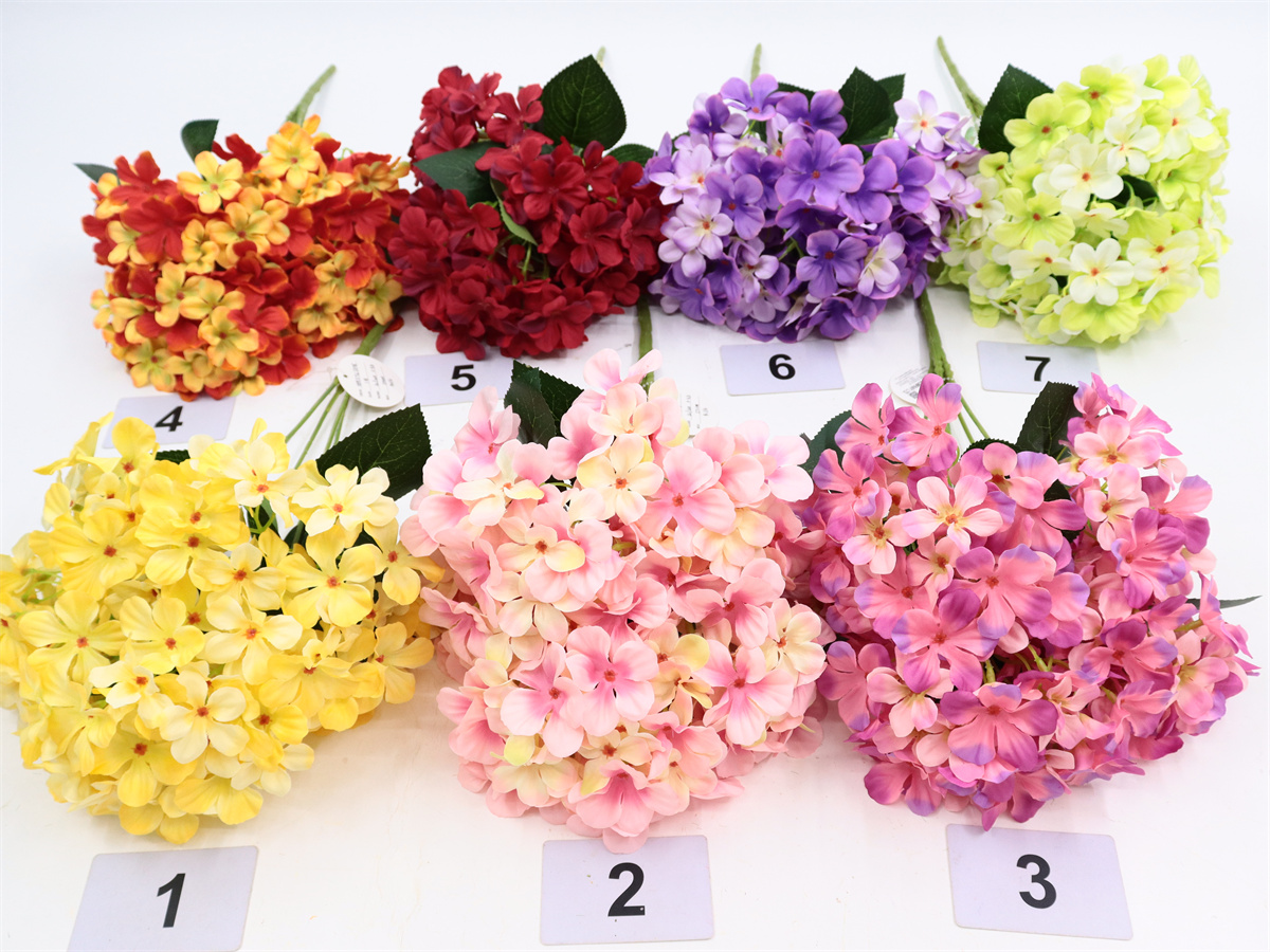 Description:50cm, single 5 bunch hydrangea,135 flowers,DIA:5cm,5 sets of plastic leaves, pan weaving
