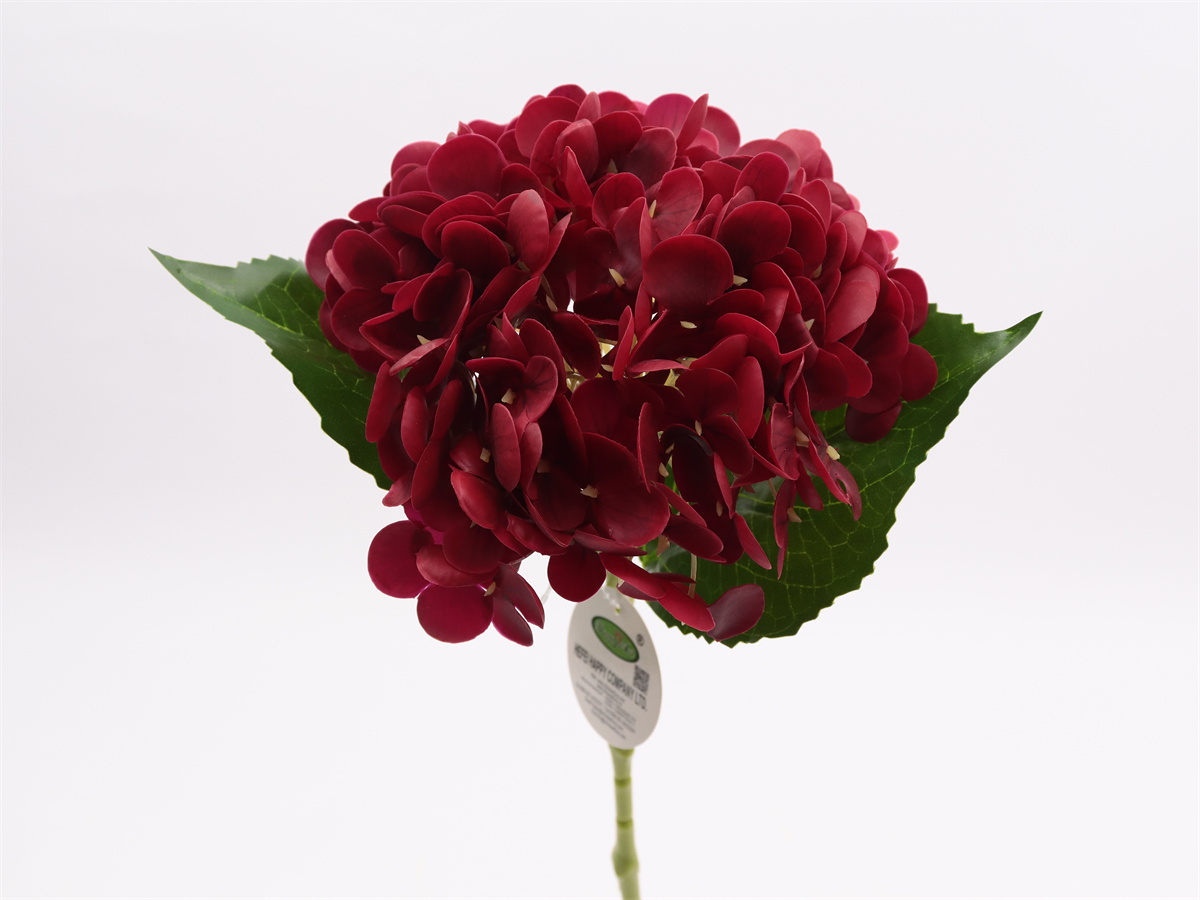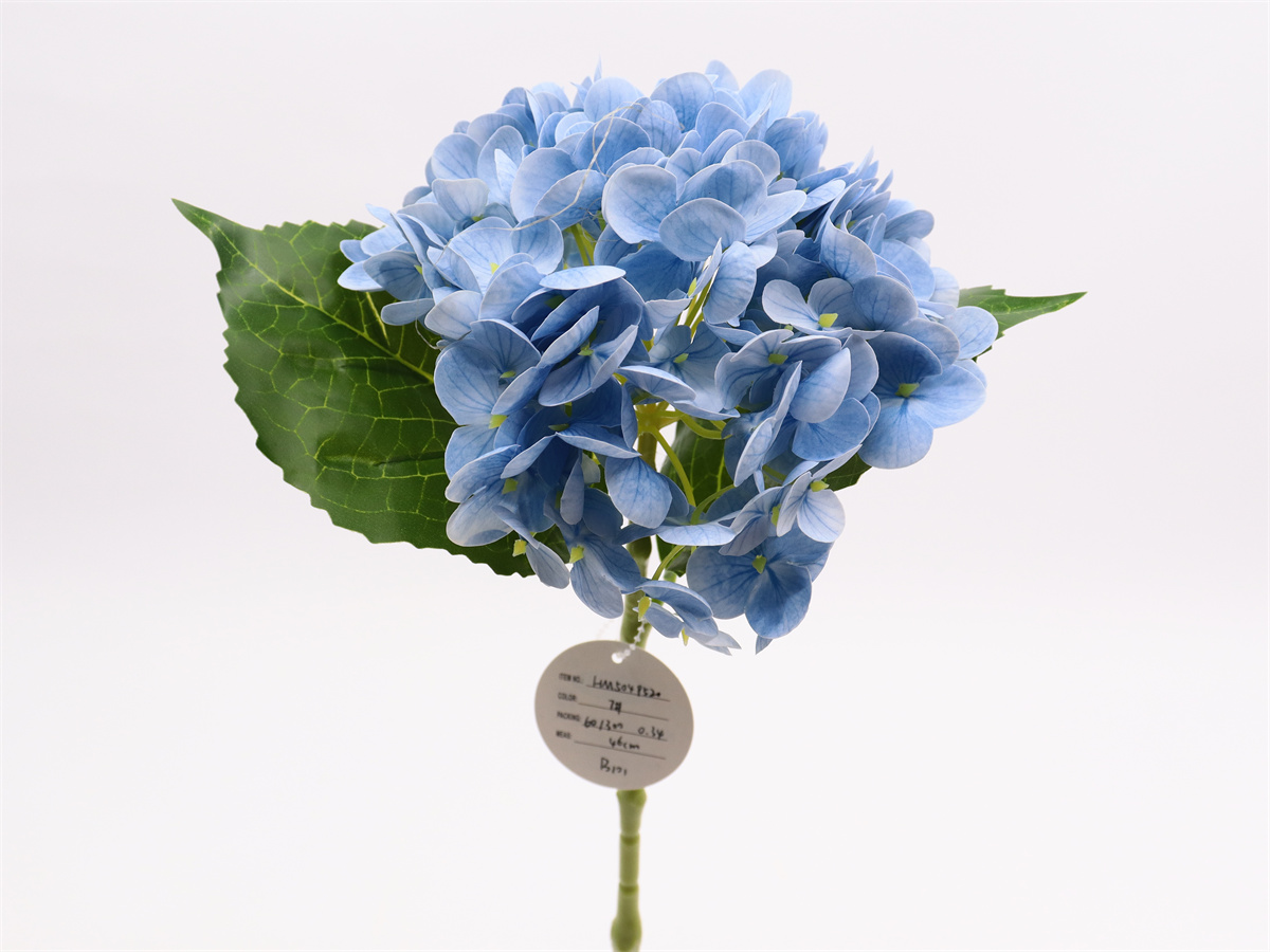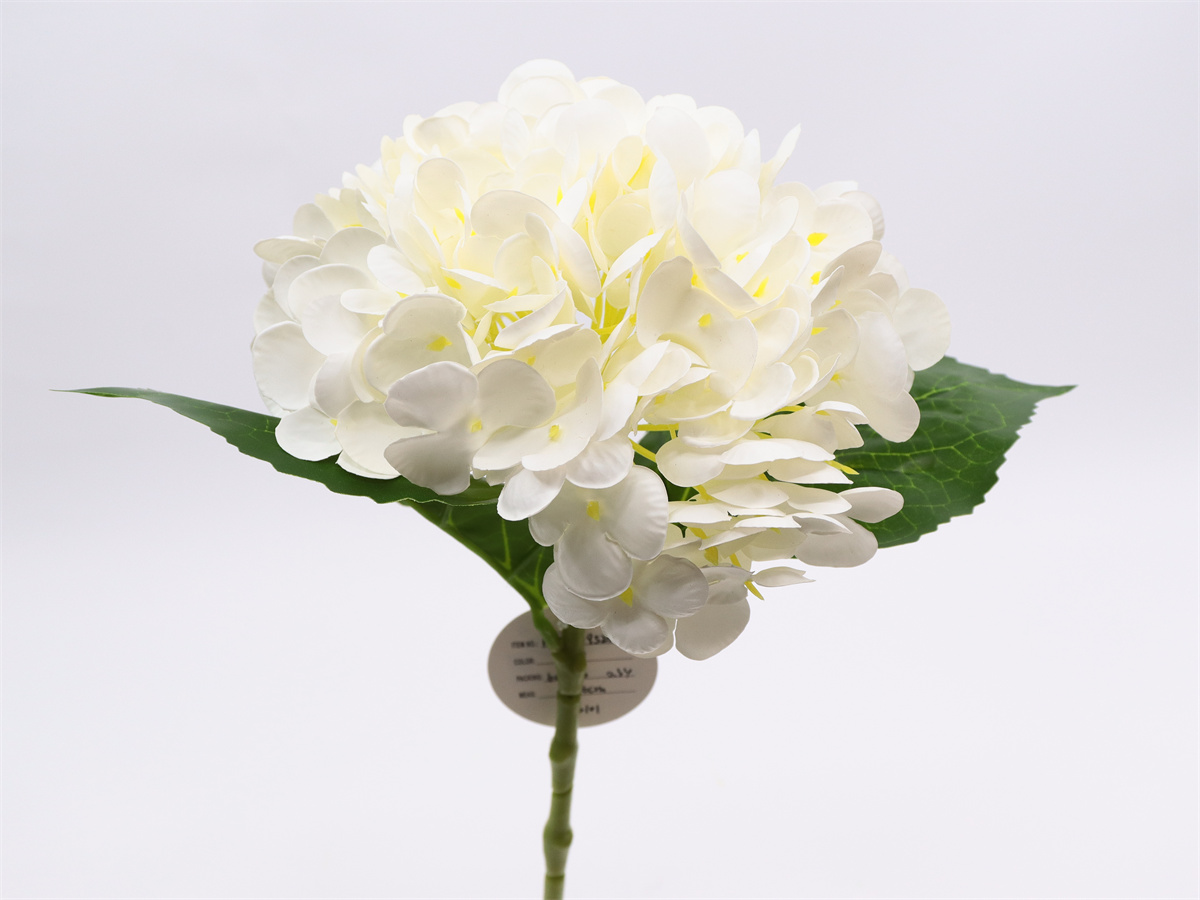 Description:46cm, single hydrangea,2 film leaves,132 flowers, large flower D:15cm, material: touch