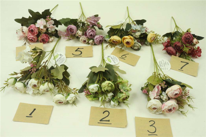 Description : Miniature single artificial popular flower-28CM Tall,3 large flowers,3 small flowers, 2 groups of hydrangea, 2 groups of plastic accessories, 4 groups of leaves,3 groups of plastic matching leaflets,material:coating materia