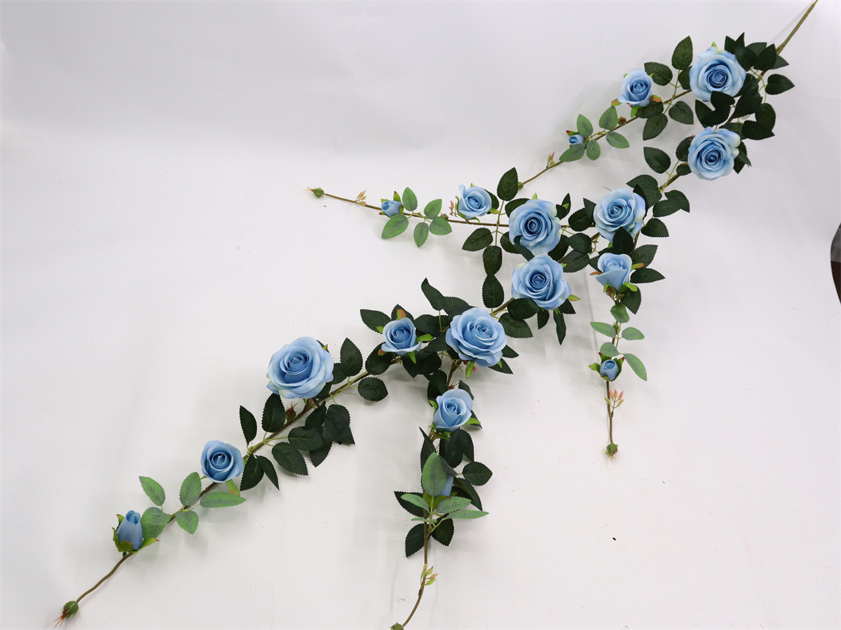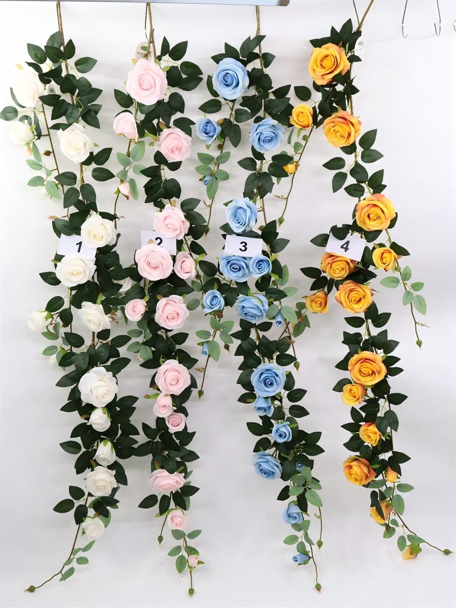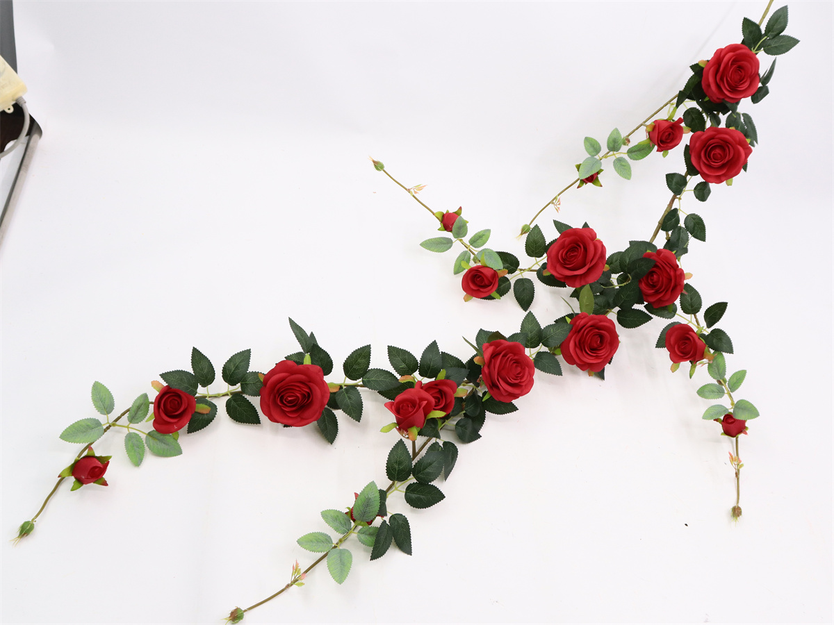 Description:160cm,rose rattan,7 large flowers dia 7.5cm,5 small flowers dia 5cm,5 buds dia 2cm,20 sets of large printed fabric leaves,5 sets of small printed fabric leaves,pongee