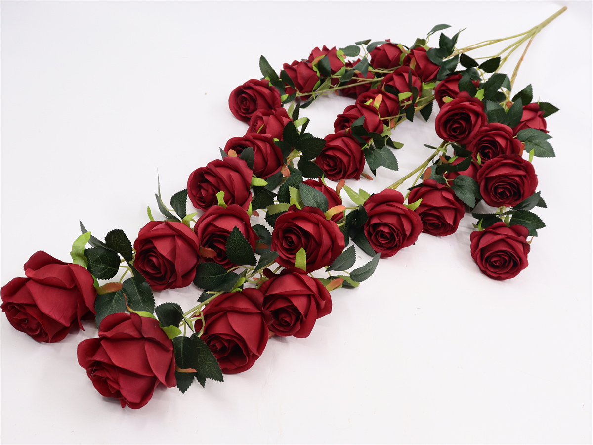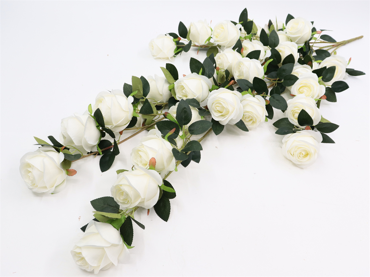 Description:127cm, rose wall hanging, 4 forks, 34 flowers, dia:8cm, 34 sets of leaves, pengee;