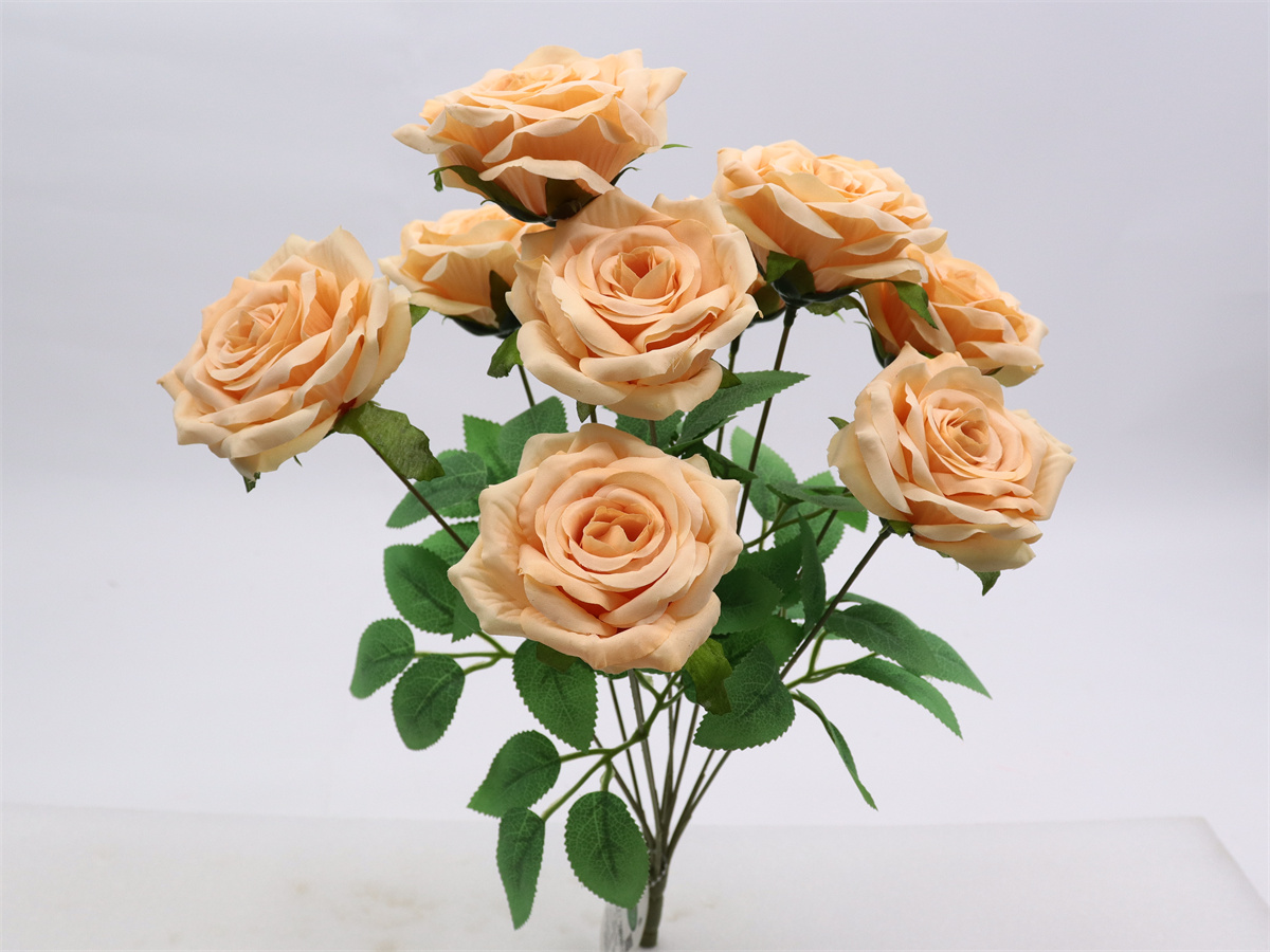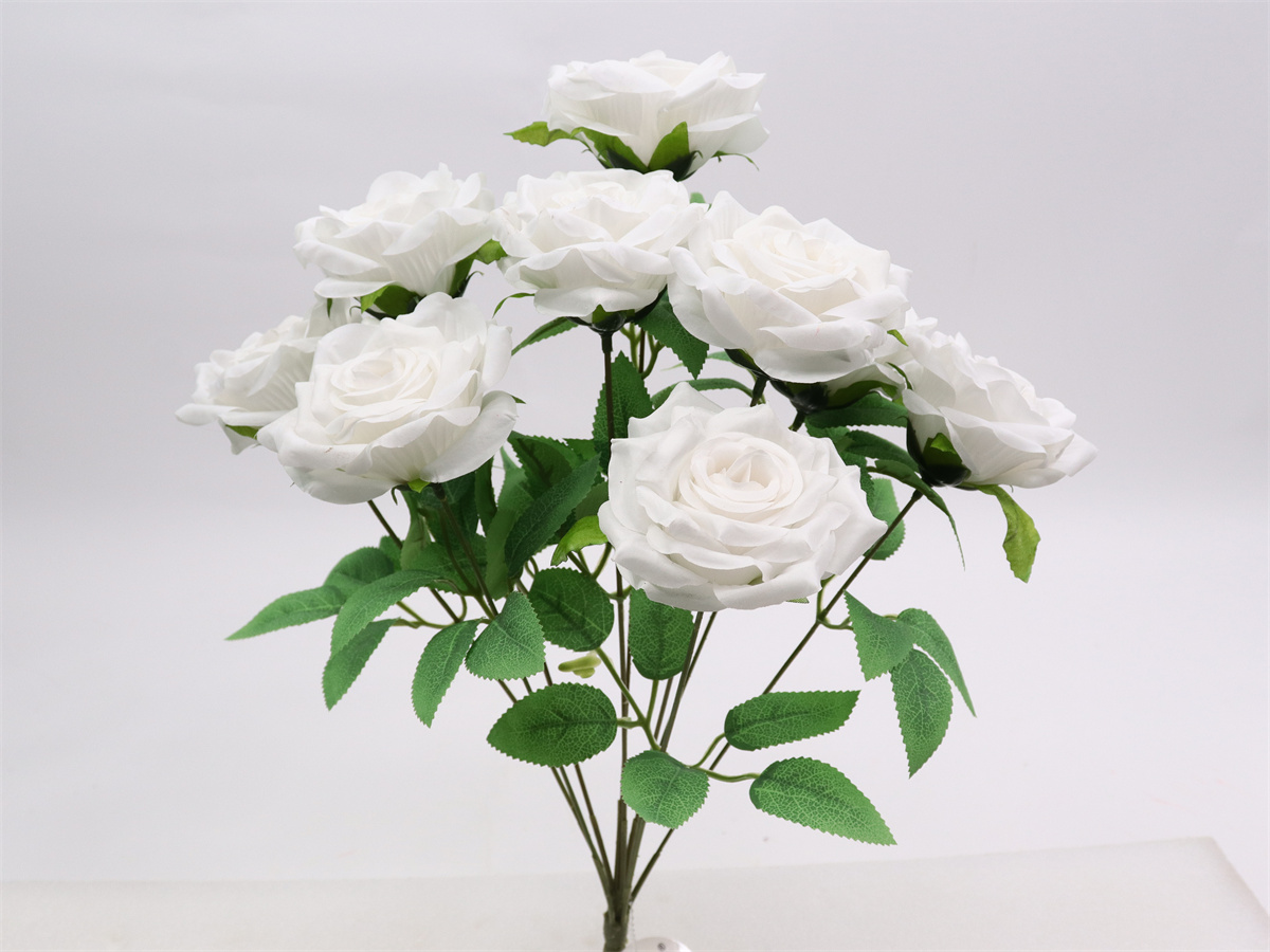 Description: 30cm,Hand held Rose,7 flowers dia:7cm,7 sets of leaves,1 Lafite grass,pongee