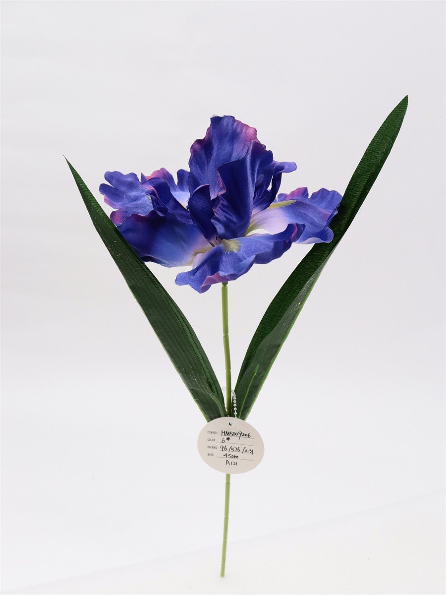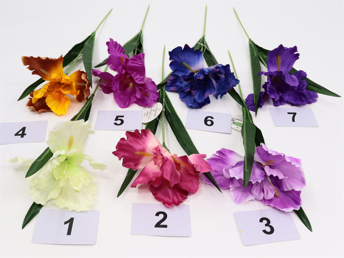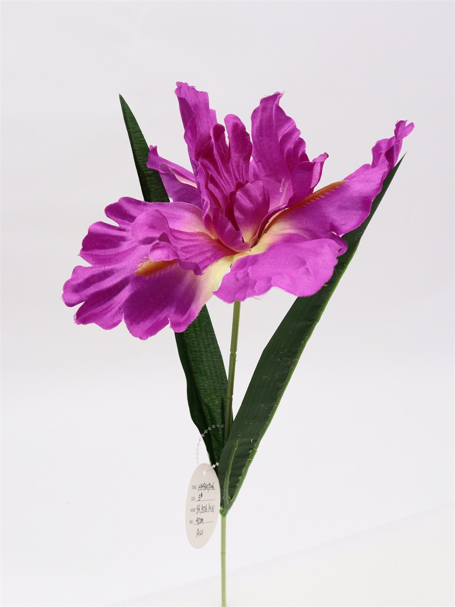 Description: 45cm,single iris,1 flower,dia 15cm,2 fabric leaves,satin