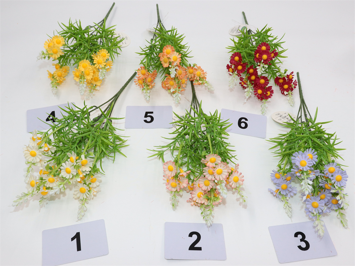 Description: 36cm,5 forks Daisy bunches,5 *5 flowers, 3*5 plastic grass;Pongee