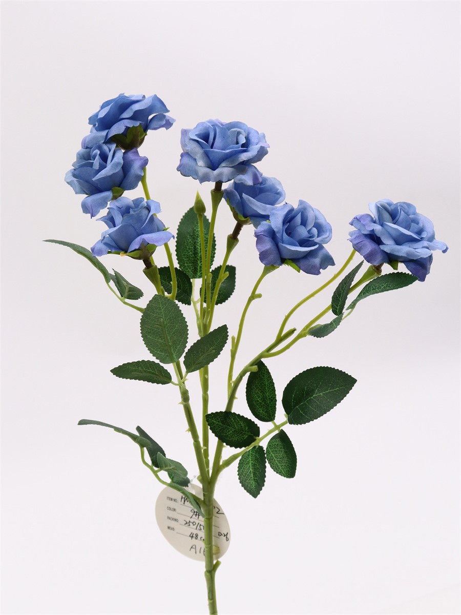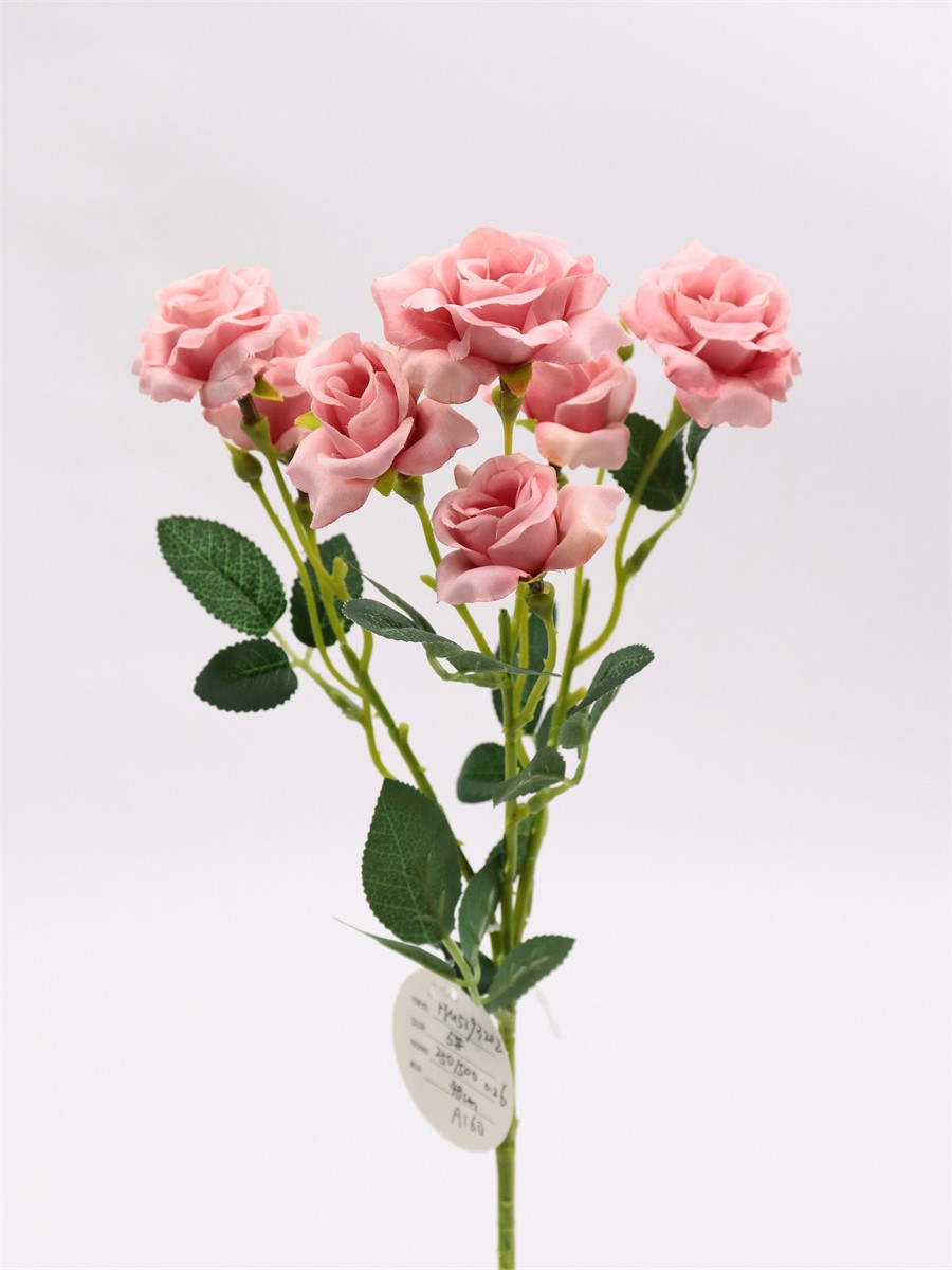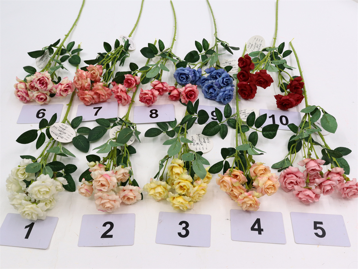 Description: 48cm,Single 3 branch mini rose,3 large flowers, dia:4cm,4 small flowers, dia:3cm,2 plastic buds, 6 sets of leaves, pongee