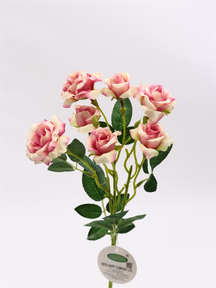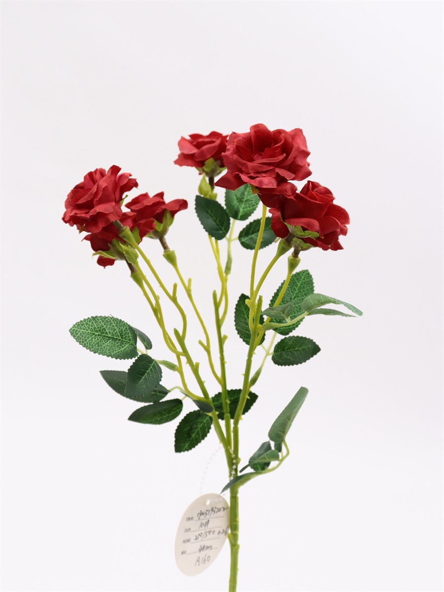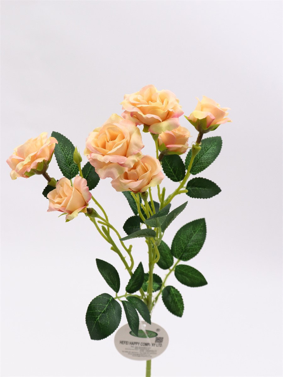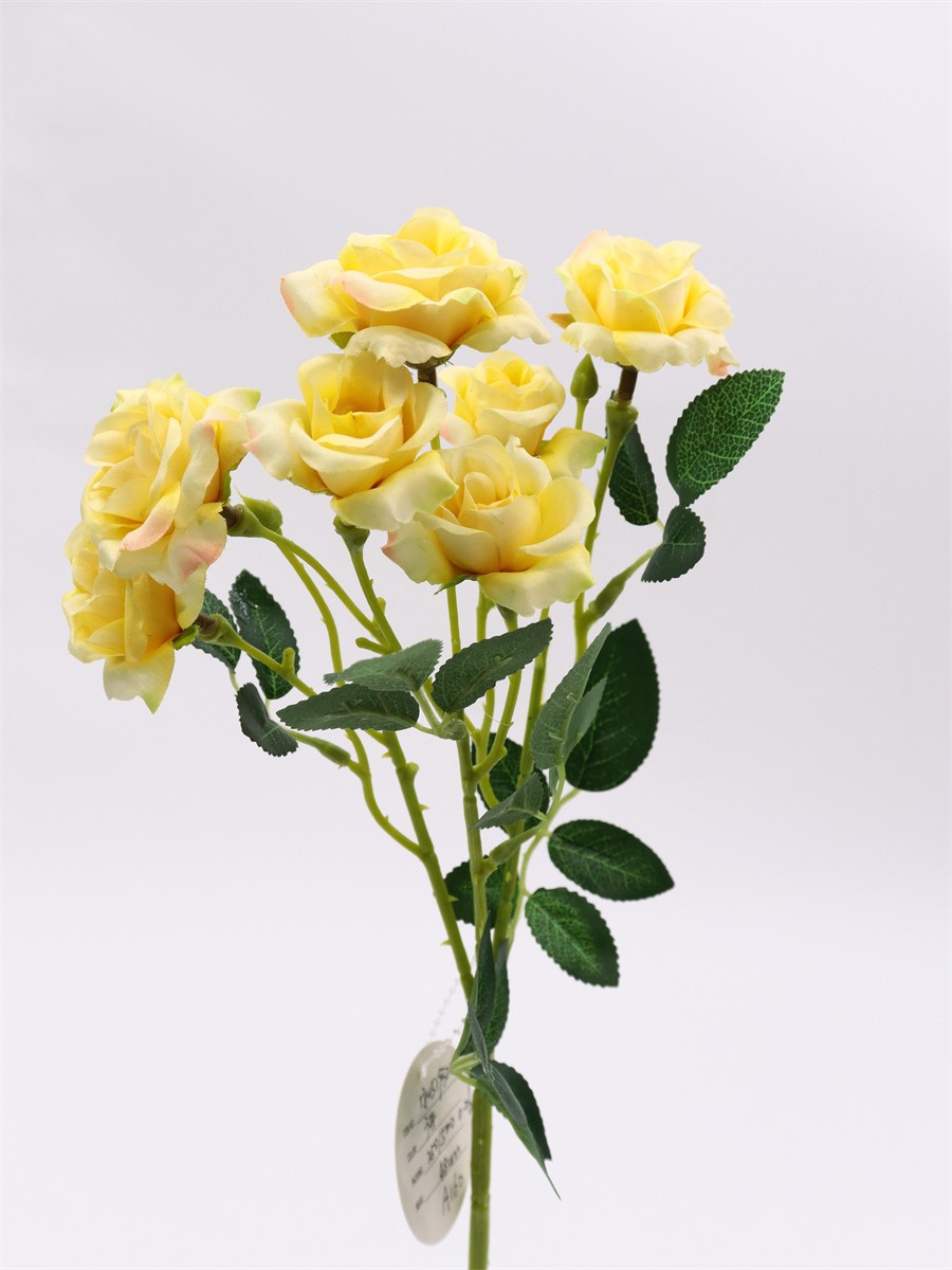 Description: 48cm,Single 3 branch mini rose,3 large flowers, dia:4cm,4 small flowers, dia:3cm,2 plastic buds, 6 sets of leaves, pongee