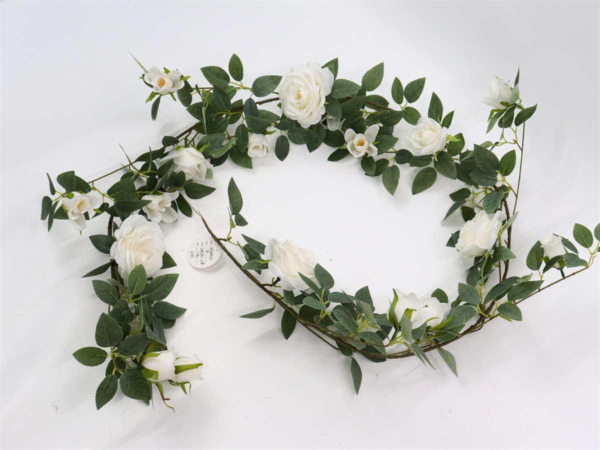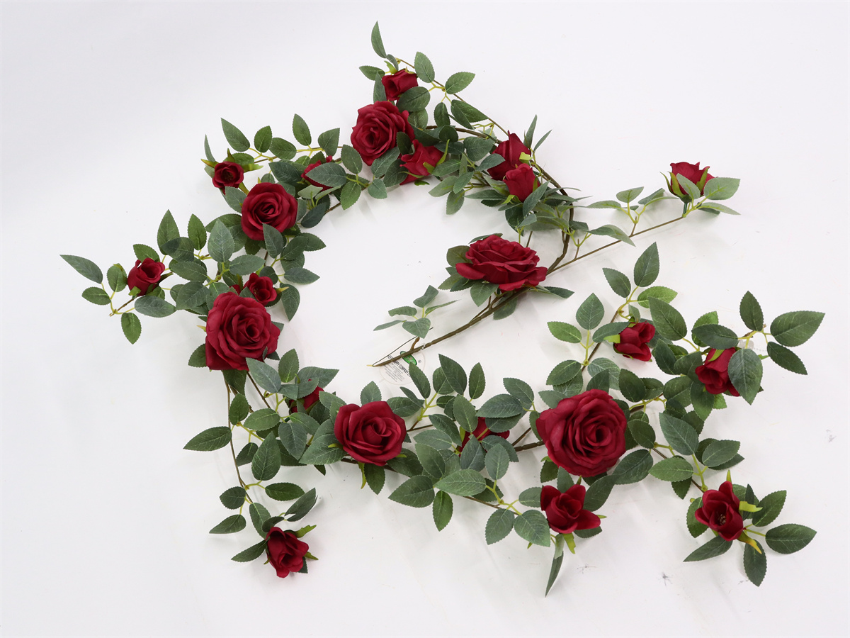 Description: 170cm,Rose garland,4 large flowers, dia:9cm,3 medium flowers, dia:8cm,15 small flowers, dia:3.5cm,60 set printed leaves, pongee