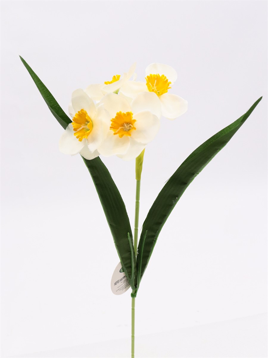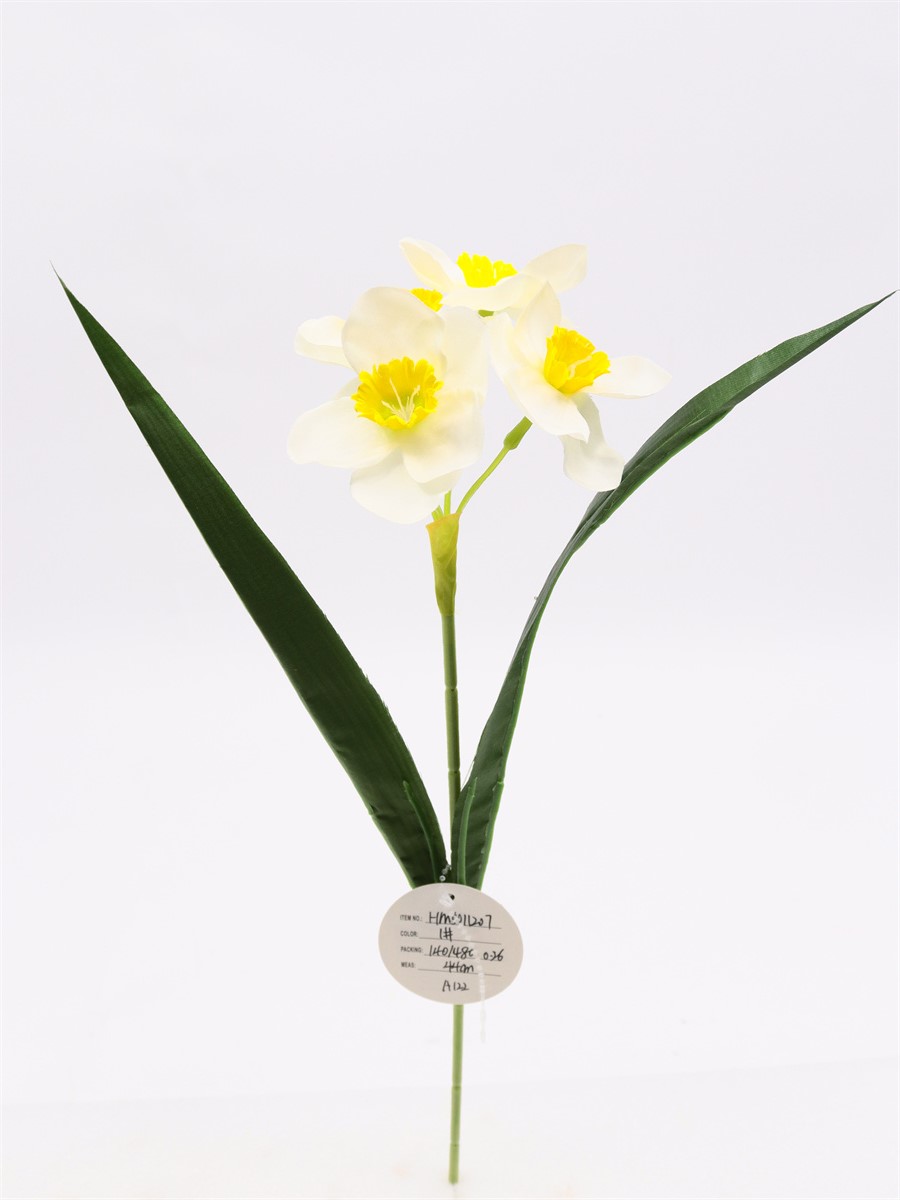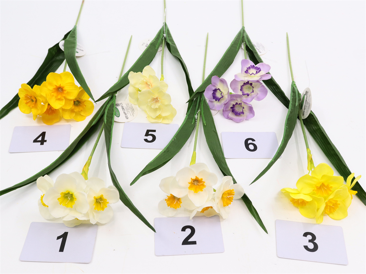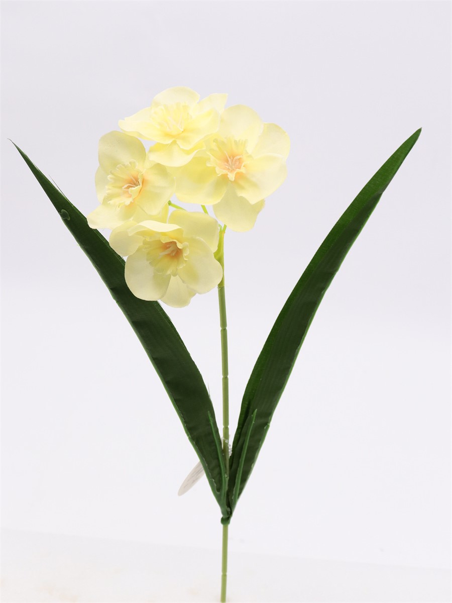 Description: 44cm,Single narcissus,4 flowers, 2 leaves, pongee