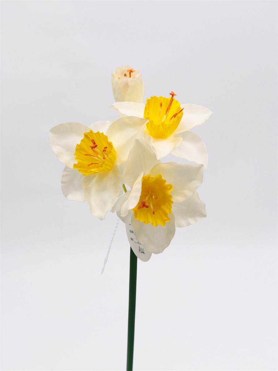 Description: 43cm,Single narcissus,3 flowers dia: 7cm, 1 bud, pongee