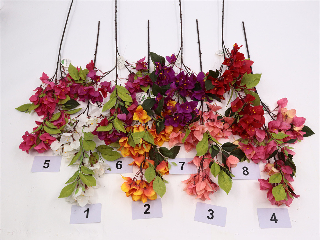 Description: 75cm, single four-pronged bougainvillea; 14*3 flowers 5 leaves; Polyester