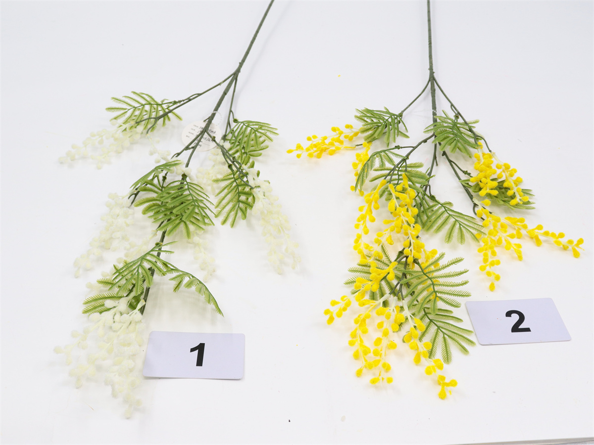 Description: 96cm,single 3 branch albizia flower,18 sets of flowers,13 sets of PE leaves,flocking flowers