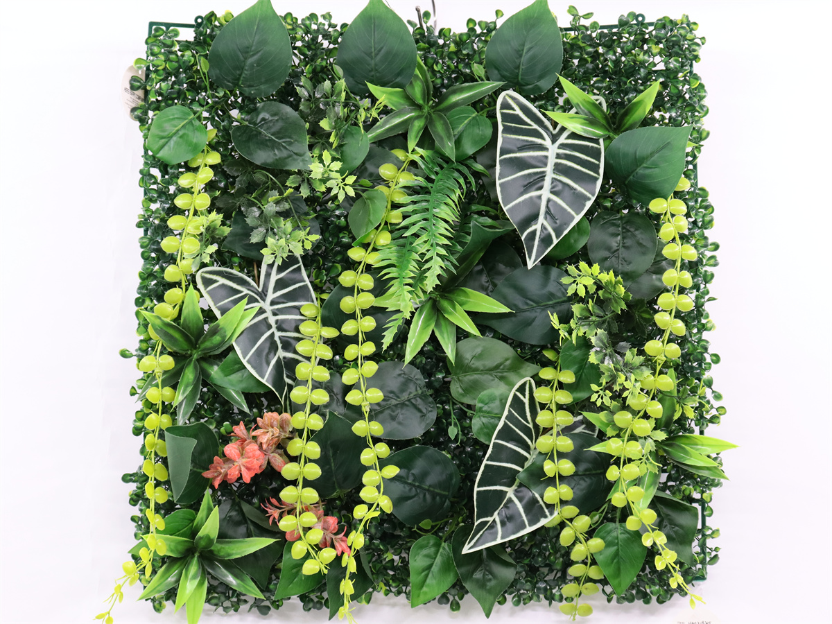 Description: 50X50CM mixed grass cushion,18X18 set Milan grass,3 set taro lvs,5 set eucalyptus lvs,12 set epipremnum aureum lvs,6 set plastic lvs,6+3+3 set plastic grass
