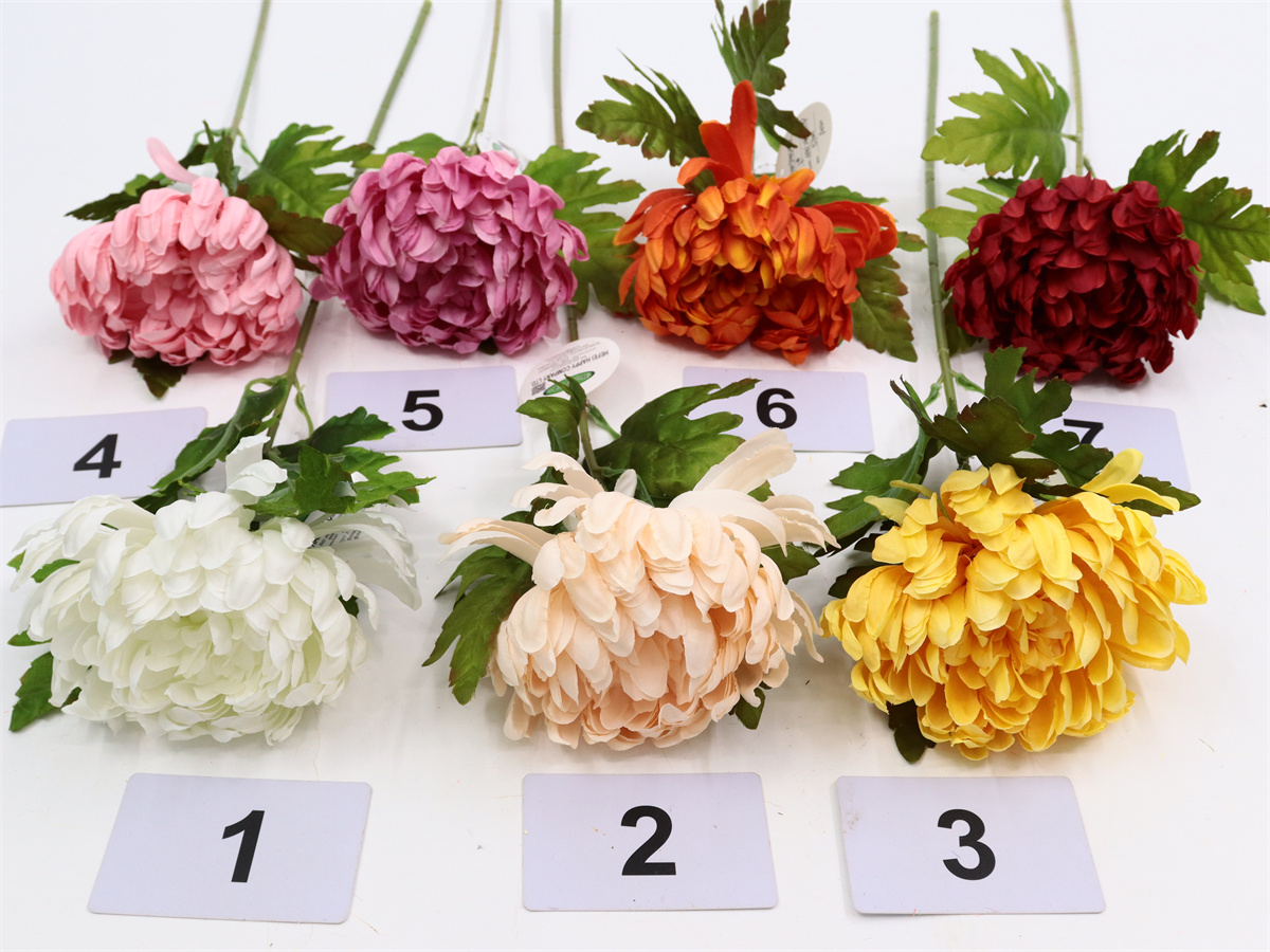 Description: 57cm,Single chrysanthemum,1 flower dia: 11.5cm, 4 cloth leaves, pongee