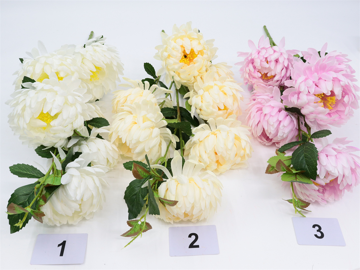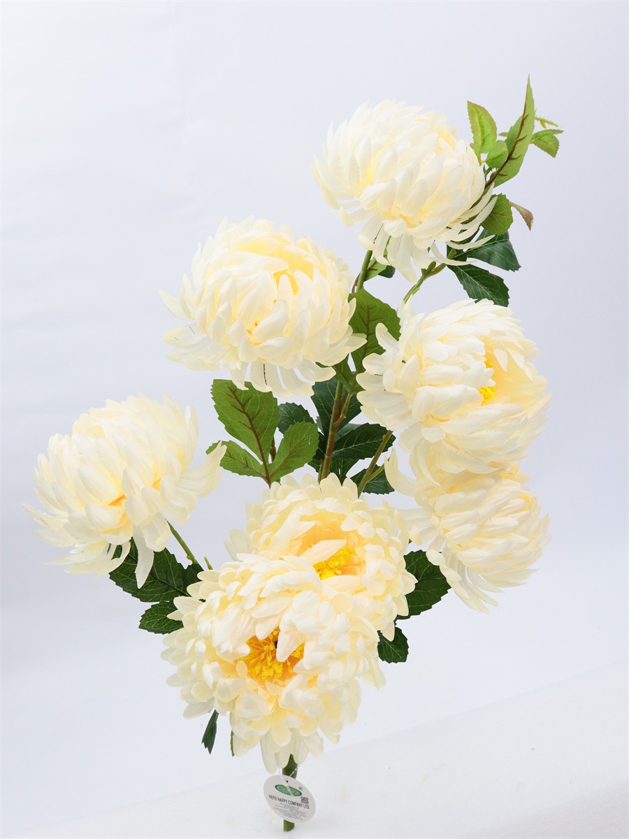 Description: 70cm,5 branch chrysanthemum bush,7 flowers,dia 15cm,11 large fabric leaves,3 small fabric leaves,pongee