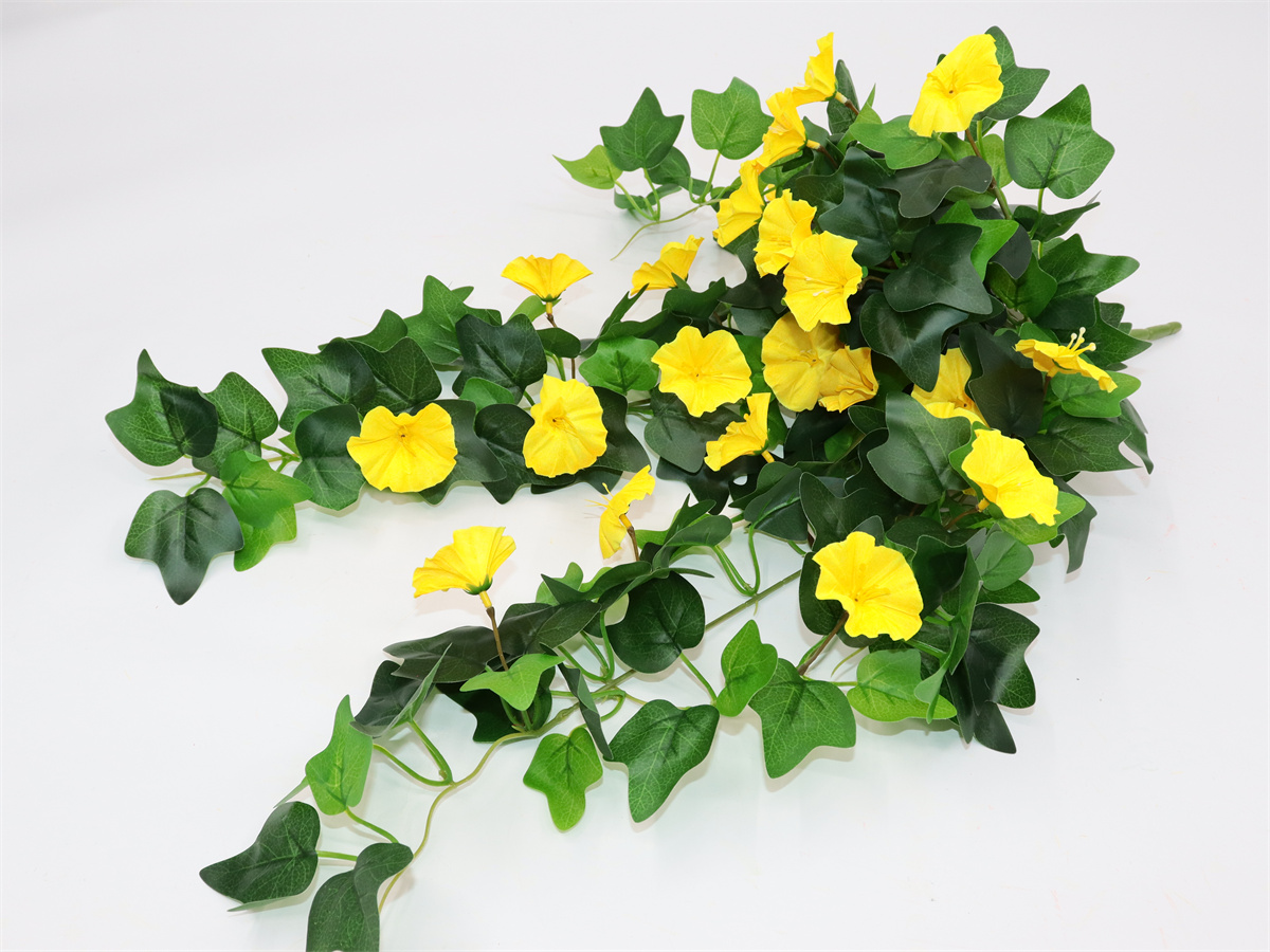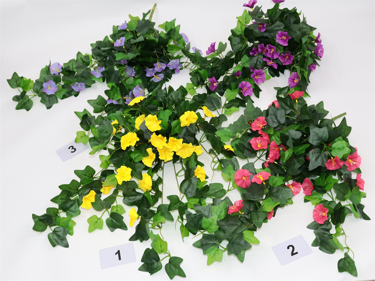 Description: 65cm, trumpet wall hanging, 23 flowers, 66 sets of glossy leaves, pan weave;