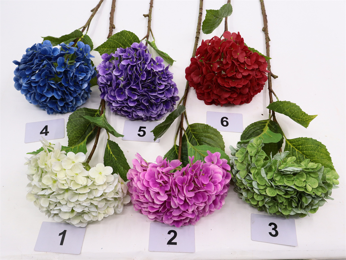 Description: 84cm,single hydrangea,36x6=216flowers,2 large printed PE leaves,2 small printed PE leaves,touched-PVC