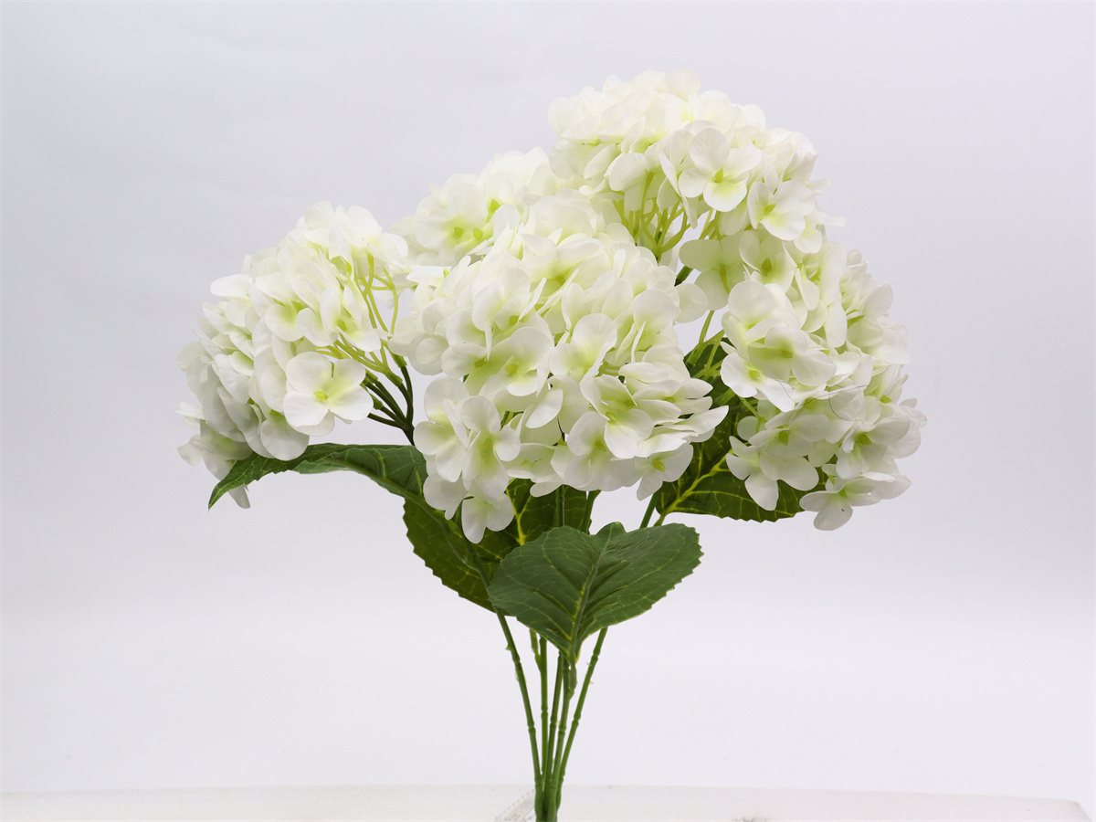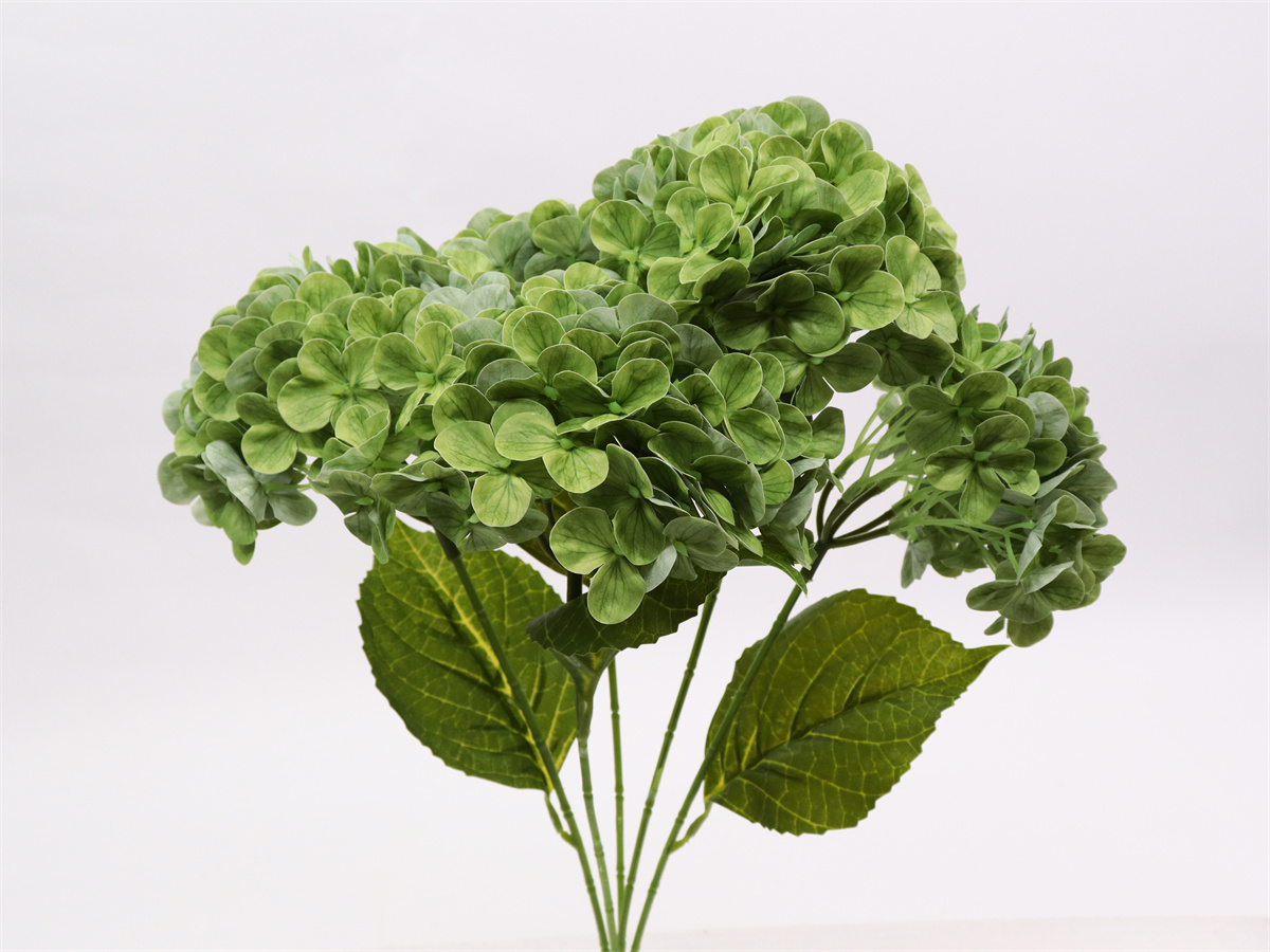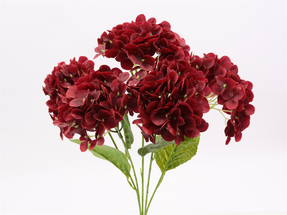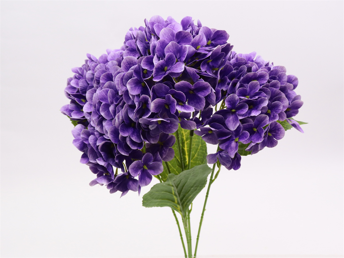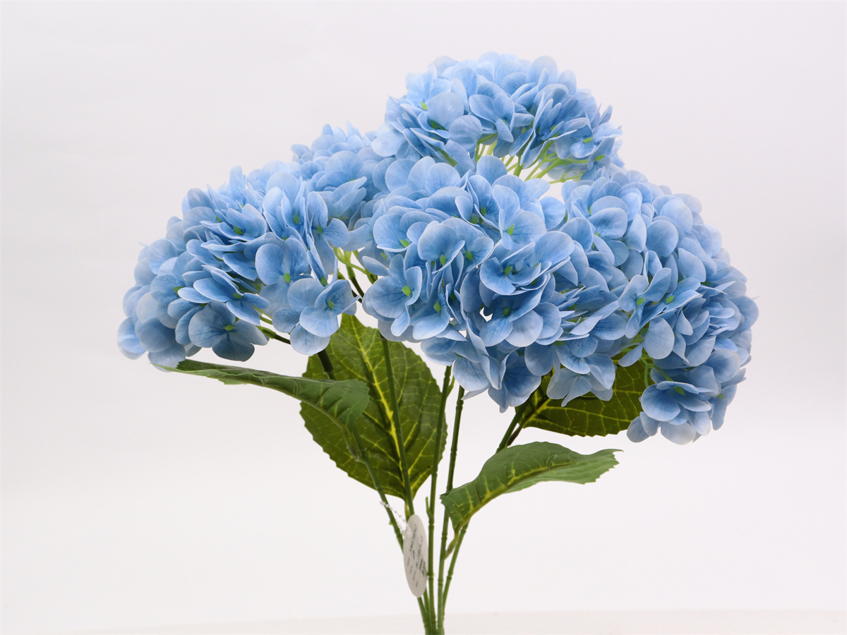 Description: 50cm,5 branch hydrangea bush,,72x5=360 petals,4 printed PE leaves,touched-PVC